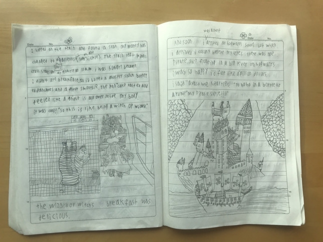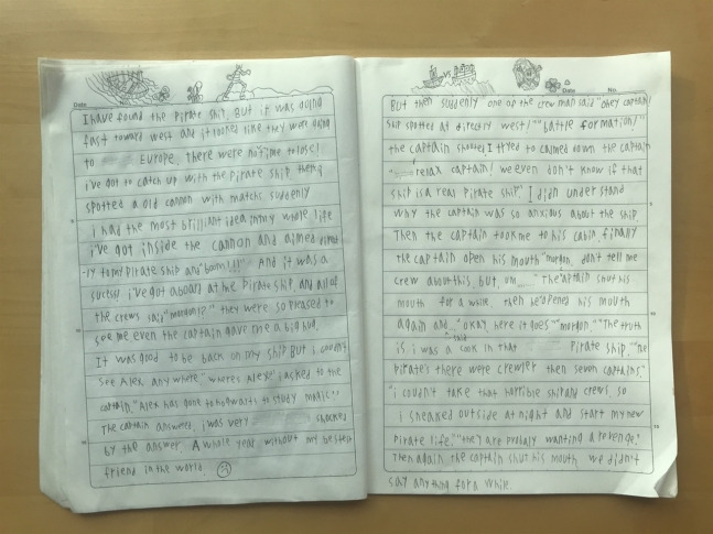 열 살인 아이는 대부분의 영화를 자막없이 봐도 이해합니다. 저는 알아듣지 못해 웃지 못하는 장면을 아이는 깔깔대면서 봐요. 본인이 하고 싶은 말을 거리낌 없이 영어로 말하고요. 책상에 앉아 무언가를 끄적거리길래 뭘 하나 보면 영어 이야기를 만들어 공책을 빽빽하게 채우더라고요.