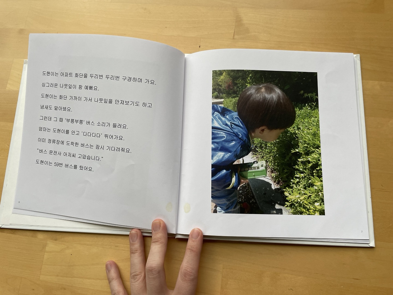 어젯밤 아이는 잠들기 전 침대 옆 책꽂이에서 책 몇 권을 꺼내 읽었다. “히히히” 웃음소리가 간간이 들리더니 마지막 책장을 덮을 때는 흡족한 얼굴로 “지금 봐도 재밌다.”라고 혼잣말을 내뱉었다. 아이가 읽은 책은 <엄마 발꼬락>, <버스사랑 도현이의 신나는 하루>, <엄마, 열매 따러 가요!>, <내 라니가 사라졌어!> 그림책이었다. 초등학교 3학년인 아이가 지금도 가끔 꺼내 보는 이 그림책은 어느 서점에서도 팔지 않는다. 한 사람을 위해 만든 책으로 세상에 단 한 권뿐이다. 아이가 세 살 때 나는 아이의 이야기를 담은 그림책을 직접 만들어주었다.