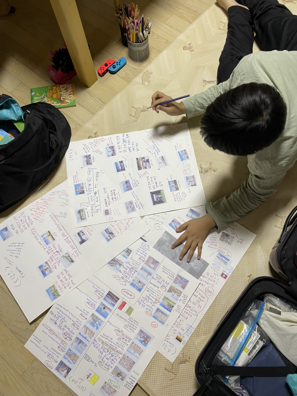 우리는 이렇게 나라별로 만든 여행 신문을 가지고 유럽 패키지여행을 떠났다. 여행지에서 버스, 기차로 이동하는 시간에 여행 신문을 꺼내 보면서 아이와 퀴즈를 주고받기도 했고, 가이드의 설명이나 새로 알게 된 사실 등을 추가로 적기도 했다. 여행 신문을 손에 들고 있으면 의존적이고 수동적인 여행자가 아닌 능동적이고 탐구적인 여행자가 됐다. 스마트폰 하나만 있으면 바로 정보를 얻을 수 있지만 그래도 기억에 오래 남는 건 내 손으로 정리해 놓은 경험과 지식이다.