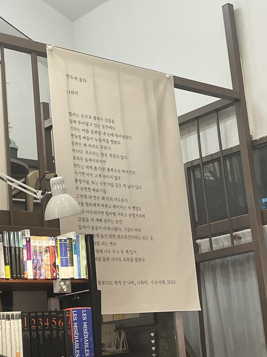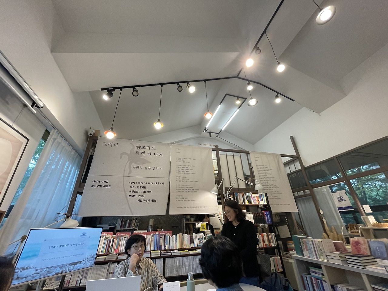 시인의 첫인상은 우리 큰엄마처럼 푸근하면서도 어딘가 단단한 인상을 풍겼다. 따뜻한 눈빛 속에서도 쉽게 무너지지 않을 분명함과 단호함이 엿보였다. 낭독회는 최근 출간된 시선집 <그러나 꽃보다도 적게 산 나여>를 중심으로 진행됐다. 시집을 매만지며 “같은 시대를 살아가는 여성들에게 전하고픈 마음으로 엮었다”고 말하는 시인의 첫마디에 내 마음도 서서히 열렸다.