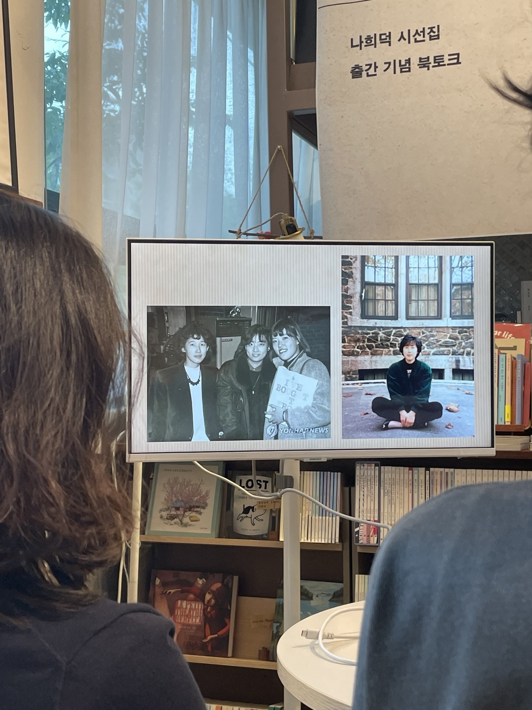 시인은 여러 장의 사진과 함께 자신의 생애를 차분히 들려주며 그 삶이 시 속에 어떻게 녹아들었는지를 이야기했다. 에덴 보육원에서 일하셨던 부모님 아래 공동체 속에서 자란 어린 시절, 윤동주의 시비 곁에서 부단히 시를 습작하던 대학 시절—이 시기의 시인은 버지니아 울프를 떠올리게 할 만큼 닮아 있었다. 또 획일화를 견디지 못해 3년마다 학교를 옮겨 다녔던 교사 생활 중에는 내가 다녔던 고등학교에서 근무하셨다는 사실도 처음 알게 되었다. 순탄치 않았던 결혼 생활과 우연히 얻게 된 교수 자리까지, 마치 인간극장의 ‘나희덕’ 편을 보는 듯했다. 베일에 싸인 시인이 아니라 이 시대를 함께 살아가는 한 여성으로서 시인의 이야기를 들을 수 있어 좋았다. 시인의 삶과 문학의 단단한 연결을 느끼며 그녀의 시가 마음 깊이 스며들었다.