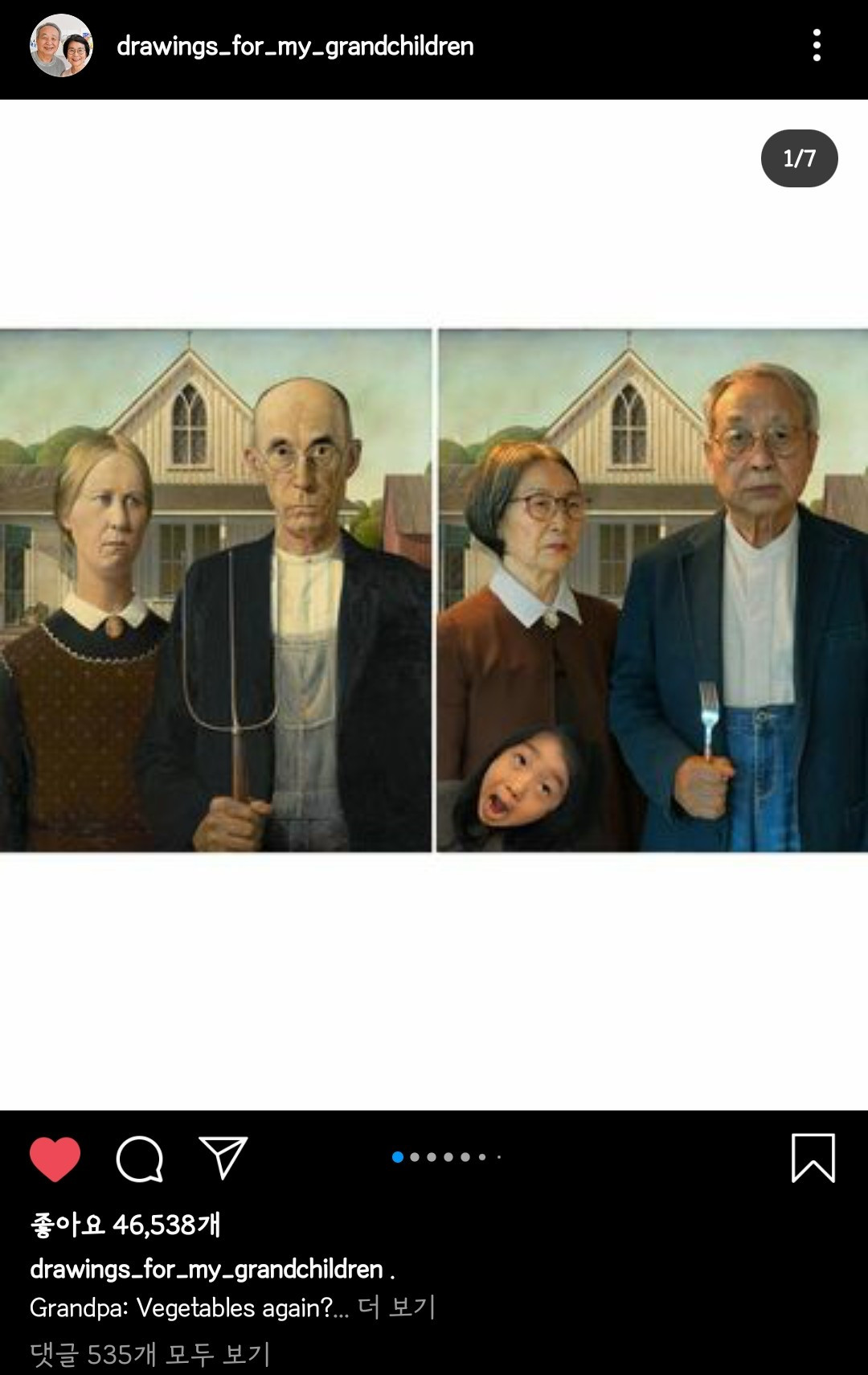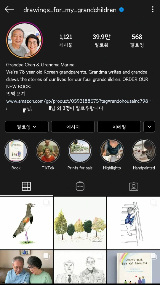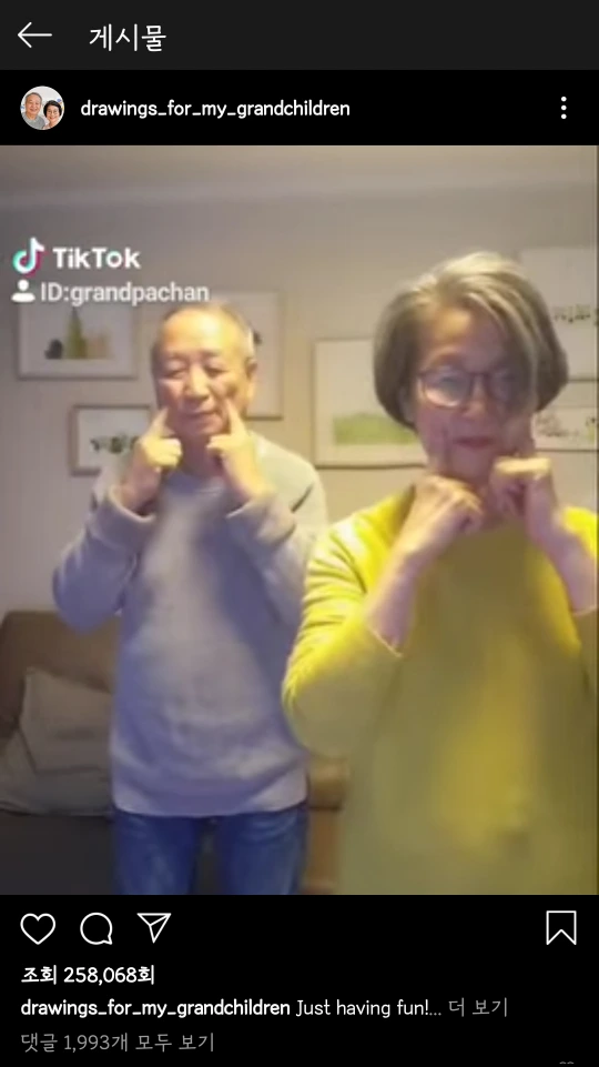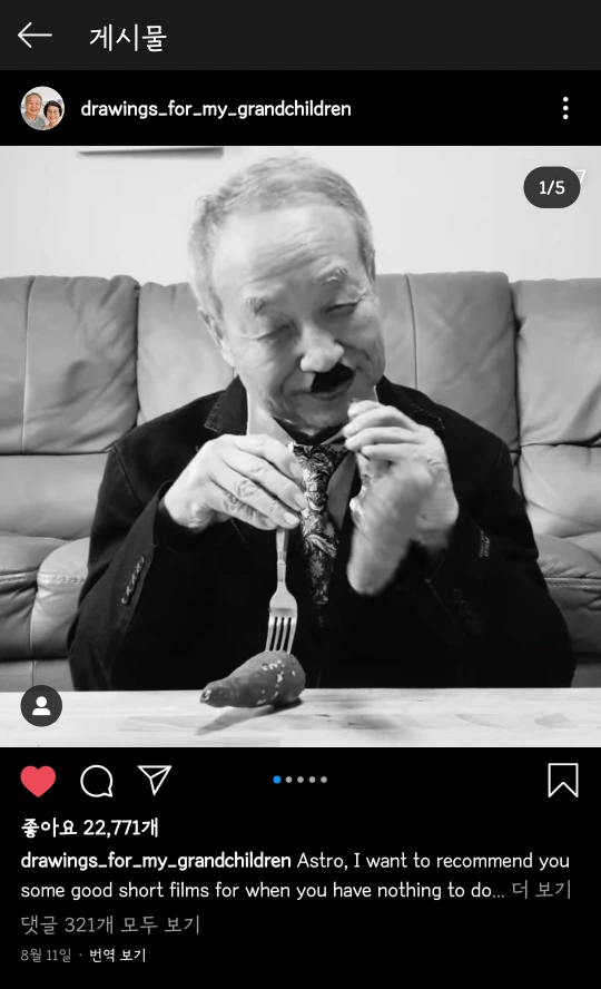 70이 넘은 나이에 쉽지 않을 SNS 계정 관리를 시작한 것뿐만 아니라 업로드를 위해 그림을 사진으로 찍고, 편지를 타이핑한다는 일련의 과정이 전부 수고스러울 일일 텐데 그런 노고와 손자들을 생각하는 진심이 온전히 전해져서 사랑스럽다.