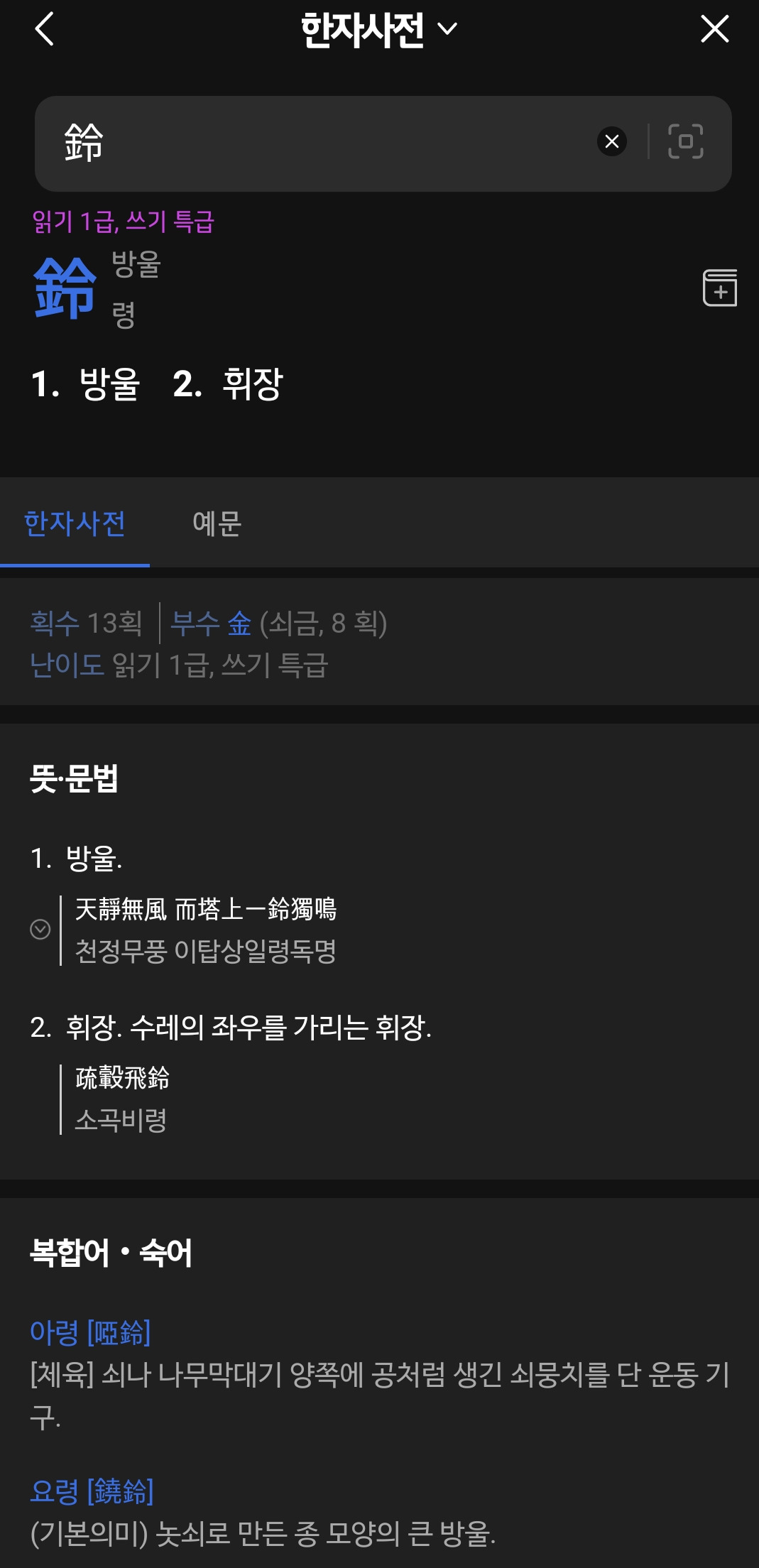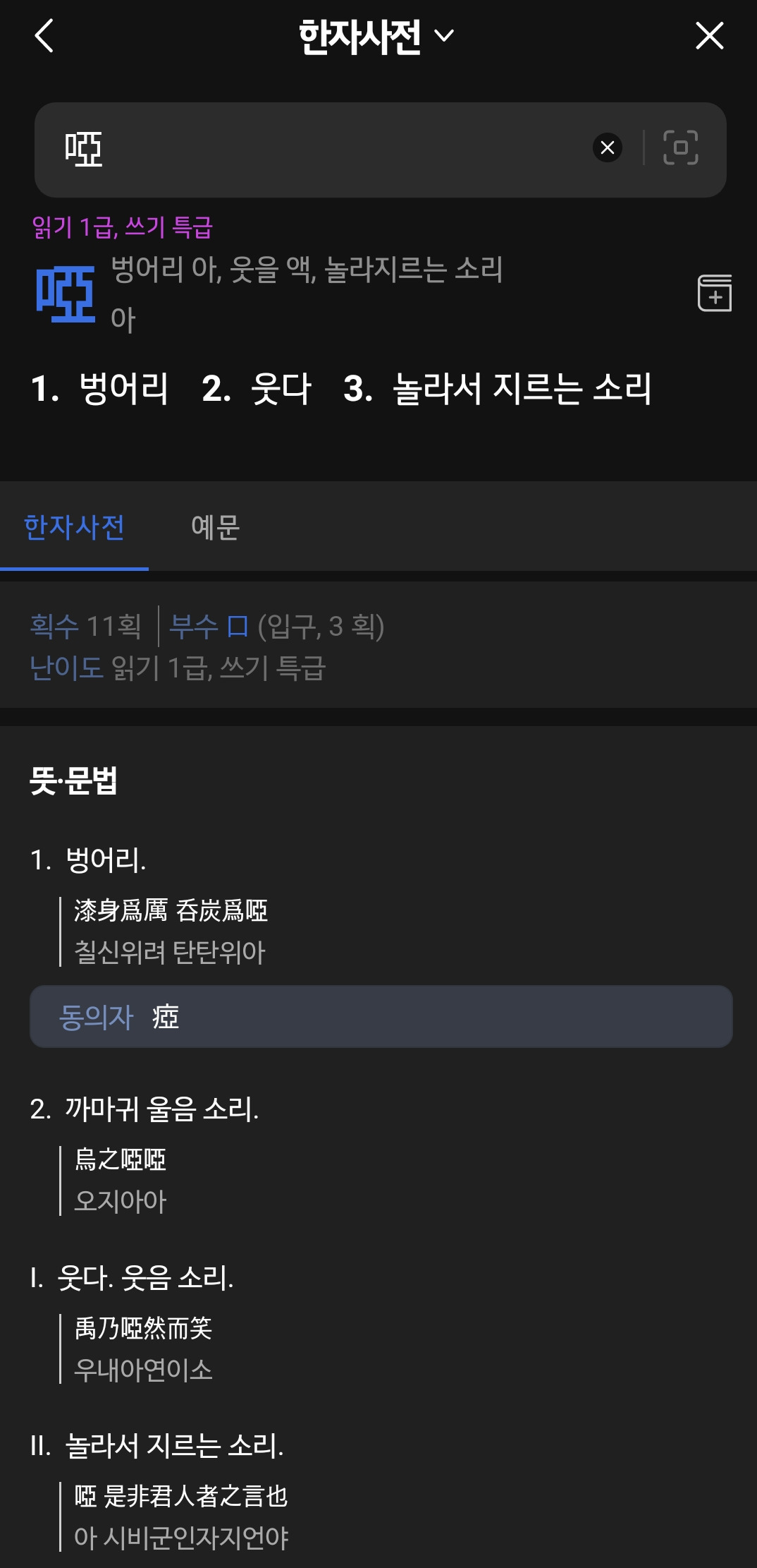 아령 한자어도, 벙어리 아(啞) 자에 방울 령(鈴)자를 쓴다.