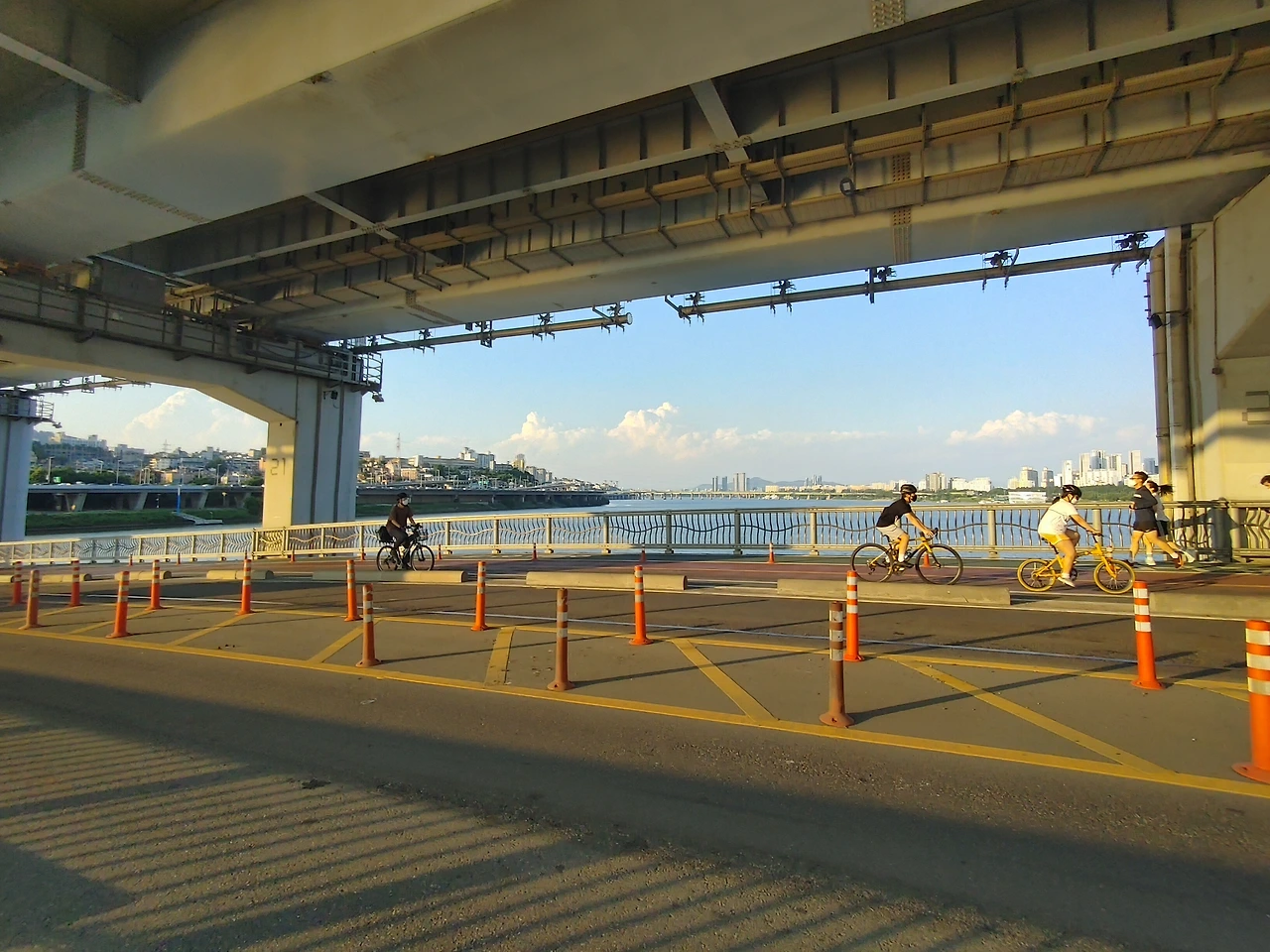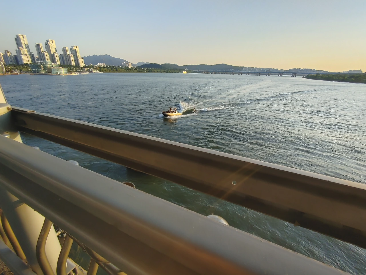 다리 아래로는 한강 수상레저 레이크를 타는 사람도