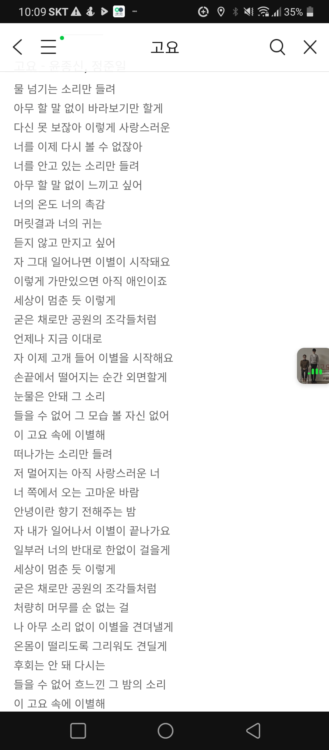 구절구절 절절함이 느껴지는 이별 직전 심경. 윤종신 가사