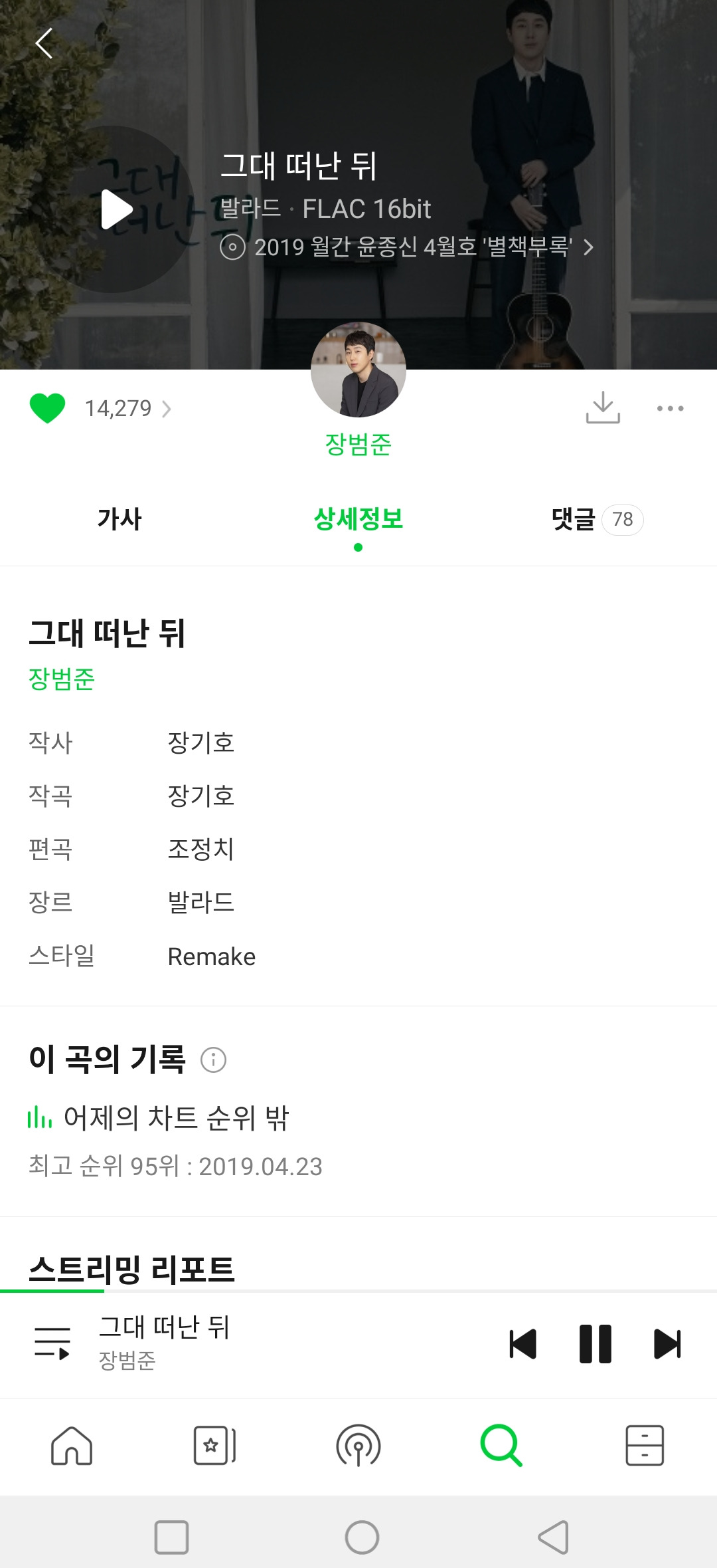 2019년 월간 윤종신 4월호. '별책부록' 서른 특집 중 장범준 편. 빛과 소금의 노래. 그대 떠난 뒤 리메이크.