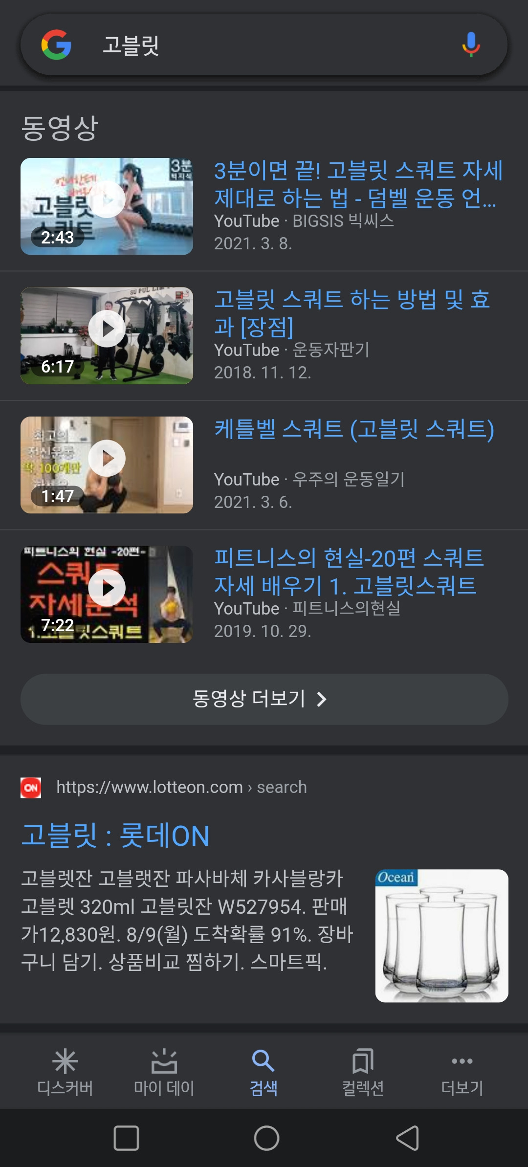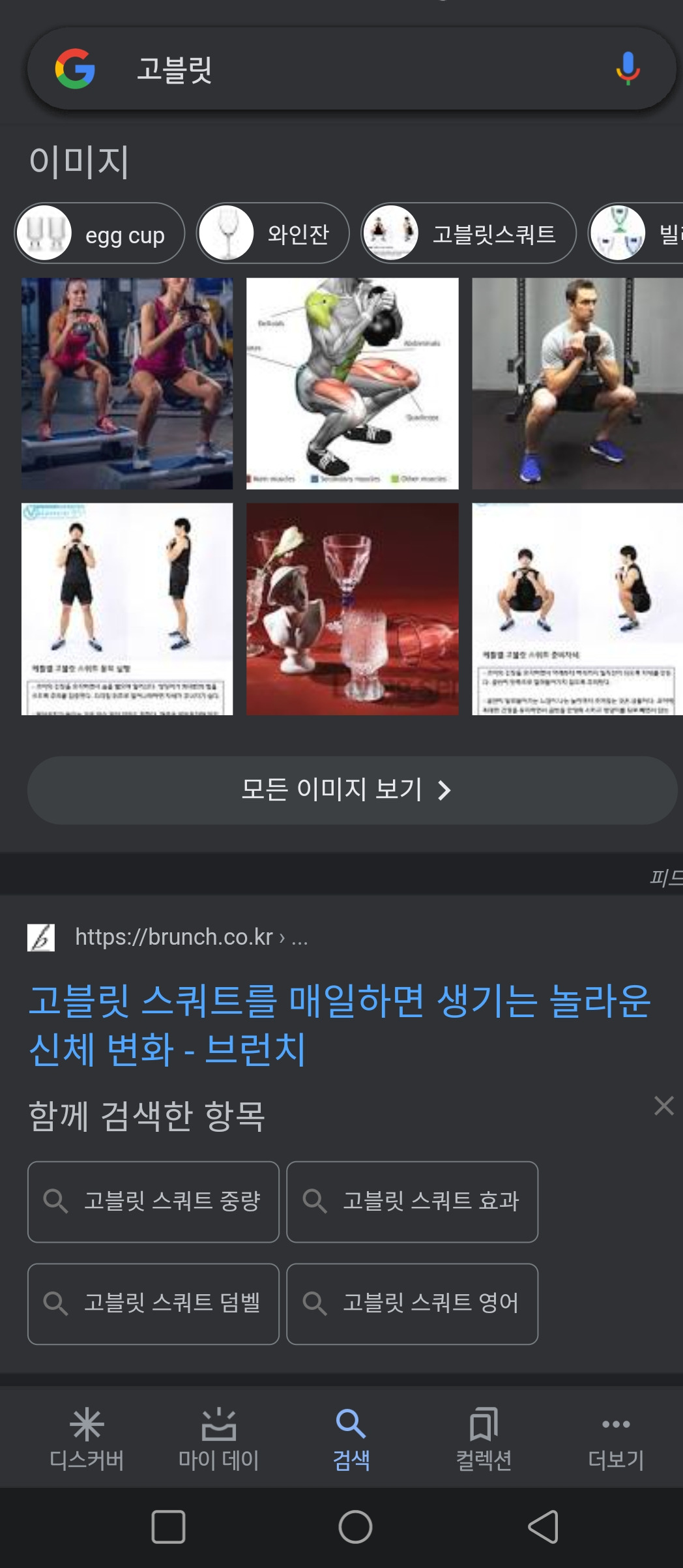 고블릿으로 검색하면 찻잔과 스쿼트 정보가 연달아 등장한다.