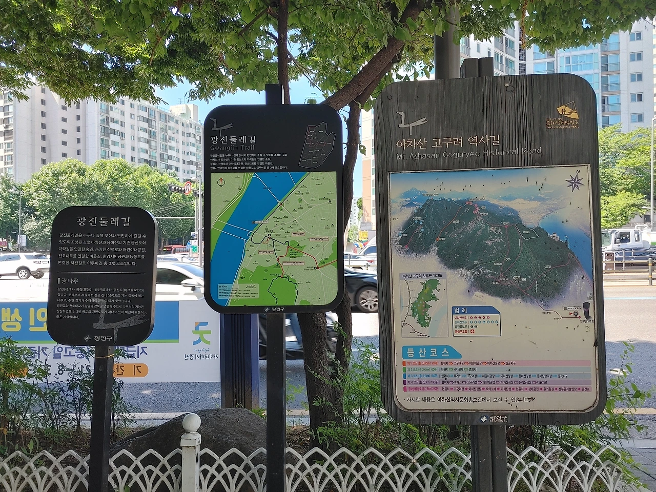 아차산 둘레길 안내판. 광나루역.
