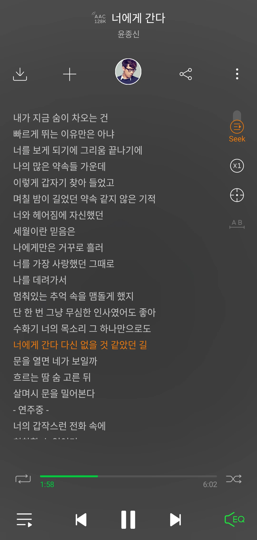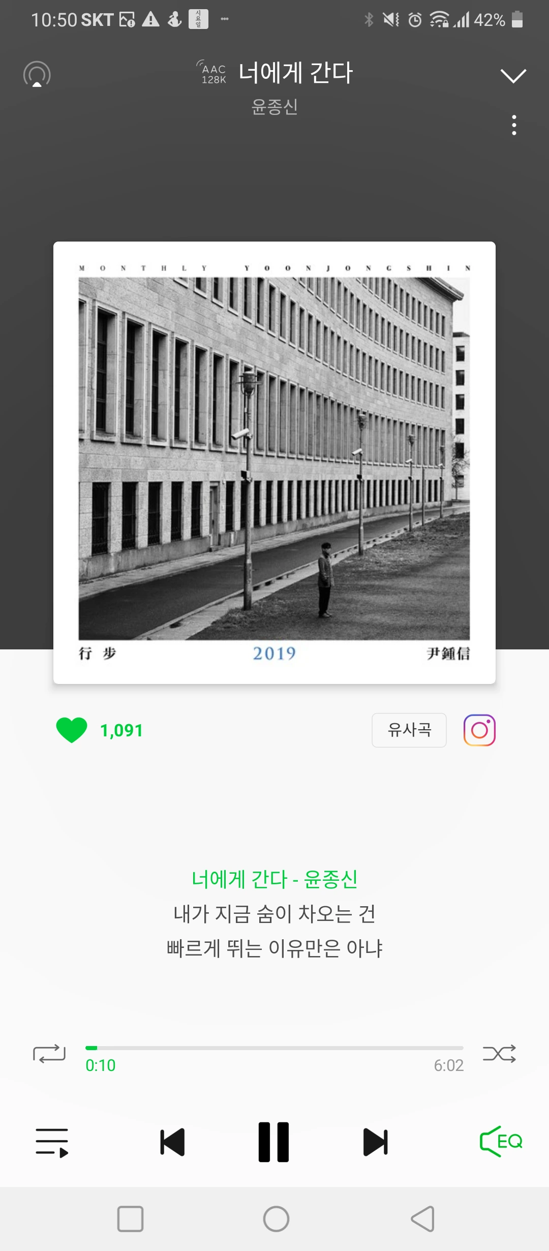 나는 매일 윤종신의 인사말이 곁든 <너에게 간다>를 들으며