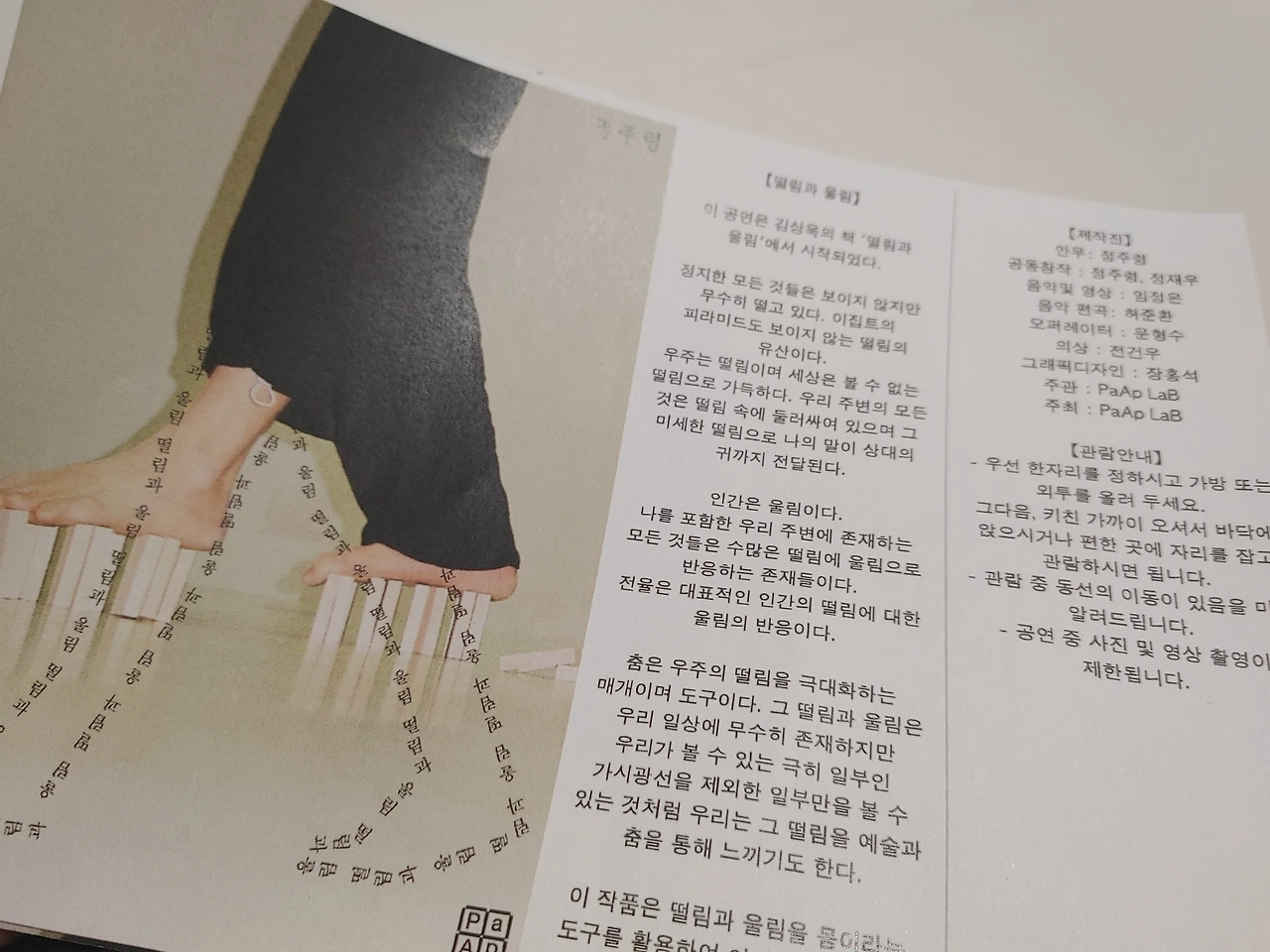떨림과 울림을 운 좋게 보게 되었고,