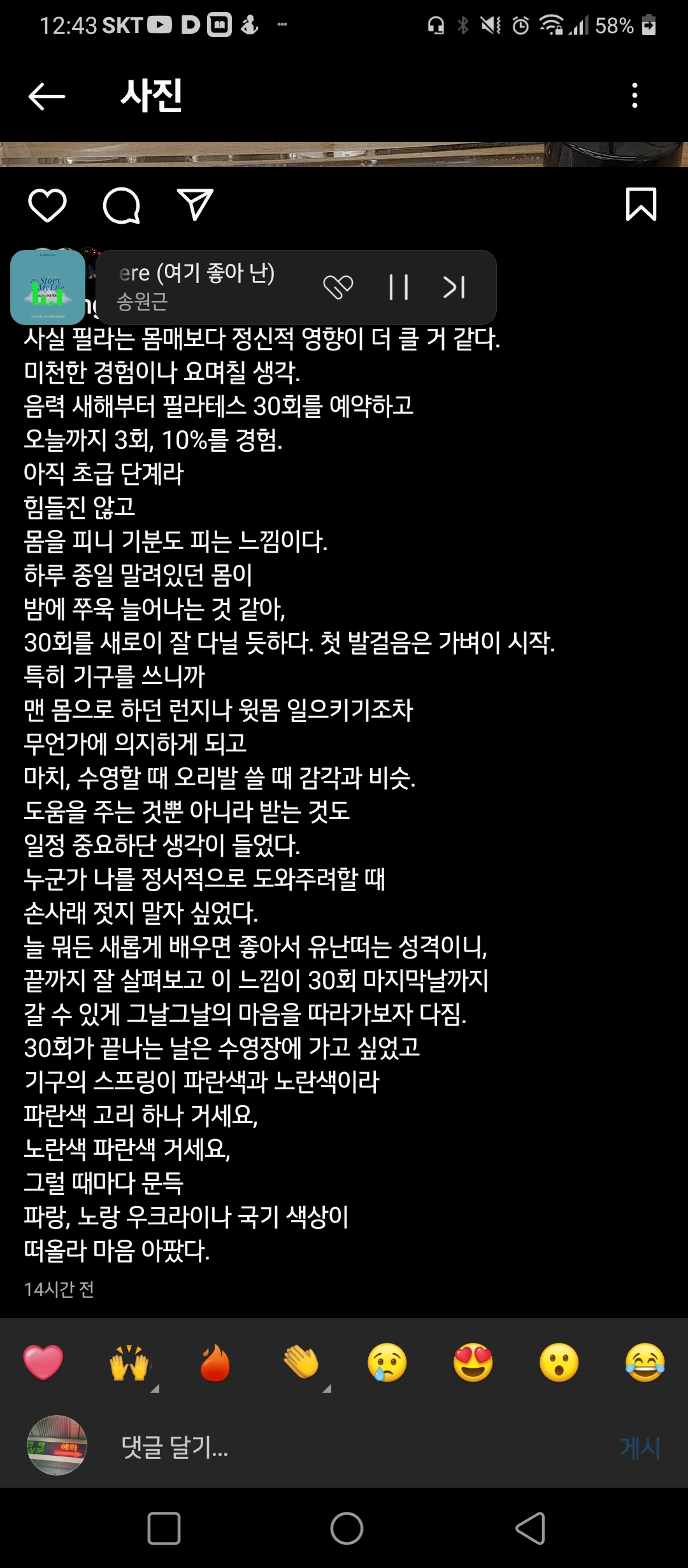 기분과 몸의 변화를 위해 필라테스를 시작했다.