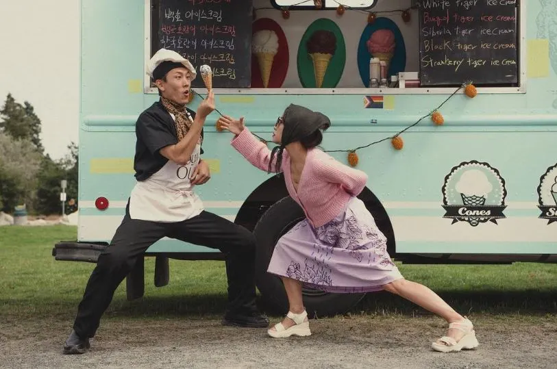 거기 스태프들이 댄서들이랑 미술감독까지 스무 명 가까이 있었거든요. 그분들이 한국 오기에는 예산이 너무 크잖아요? 그래서 빅토리아 섬에 제주도를 꾸며 넣는 선택을 했죠. 빅토리아 안에 시드니라는 지역이 있는데, 거기 아쿠아리움이 있어요. 관광지 수족관을 며칠 빌려서 모든 영문을 한국어로 바꾸고 한국인 것처럼 했죠. 제가 미술하는 사람이 아니다 보니, 한국 텍스트로 보내긴 했지만, 어색한 글자도 많고 대부분 편집에서 날아가긴 했어요.