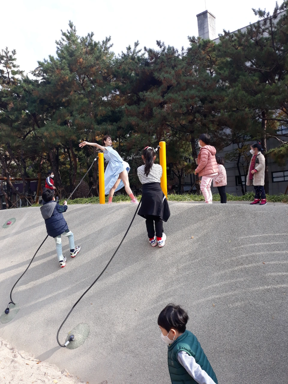 놀이터 모험난간 위에서,계단으로, 공터로