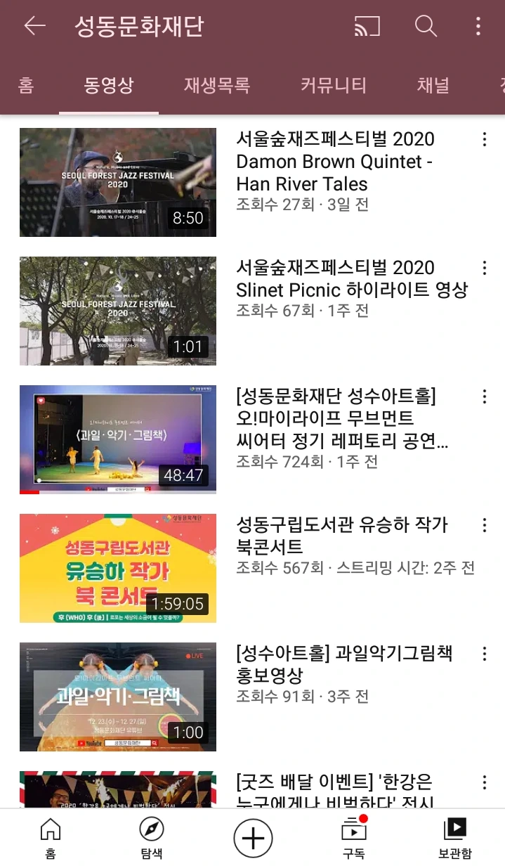 각종 공연과 전시를 무료로 업로드하고 있는데
