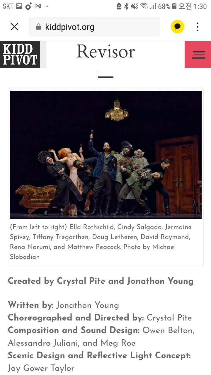얼마 전 키드피벗 무용단의 <검찰관> 이란 작품을 본 적이 있다. LG 아트센터에서, 코로나19로 기획공연이 취소되면서 온라인 관람으로 판매했던 작이다.
