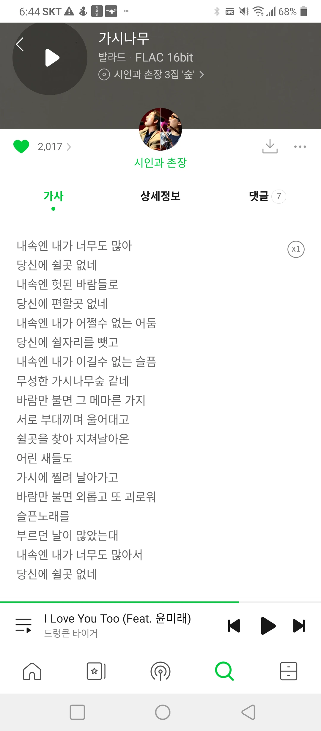 예전 펜싱경기장 공연장에서 들은 조성모의 가시나무다.