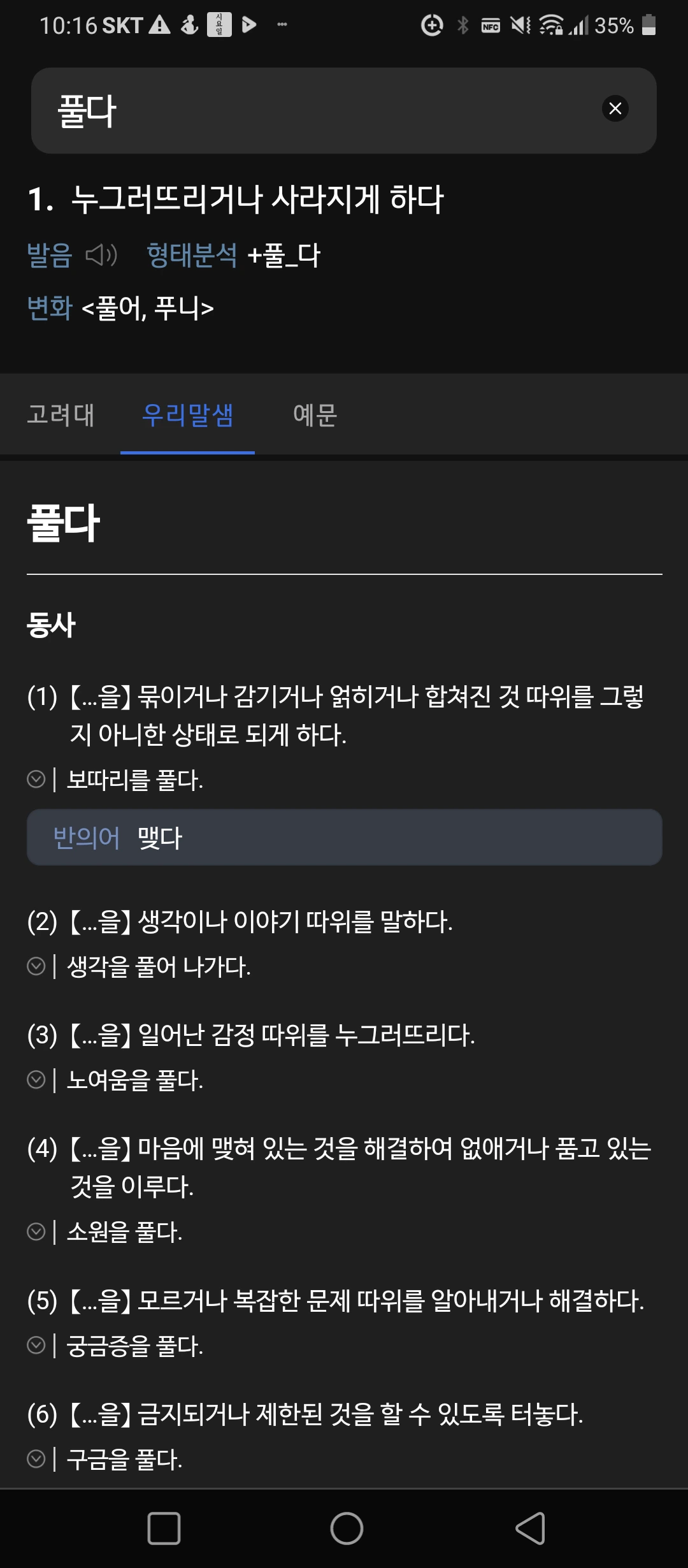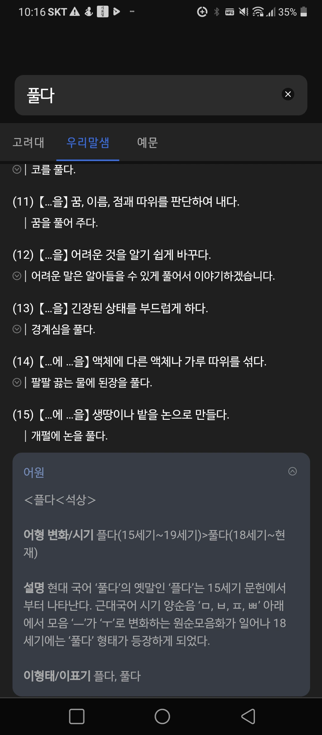 오색실을 '플텨' 내어 놓는다고 읖조린다.