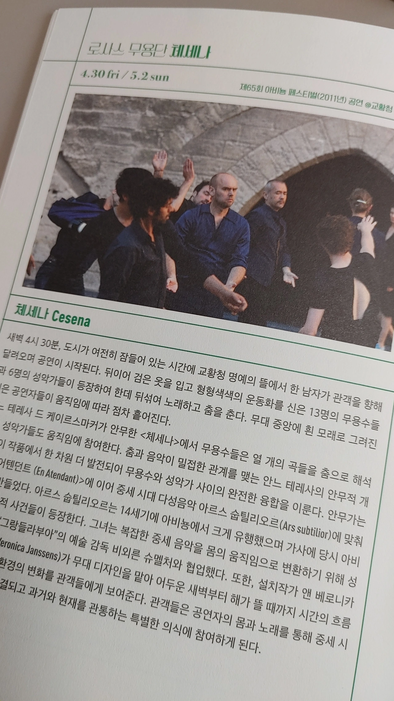 체세나는 14세기 말 이탈리아 체세나에서 벌어진 대학살을 뜻했고, 안무자는 당시 배경과 연결된 10곡을 골라