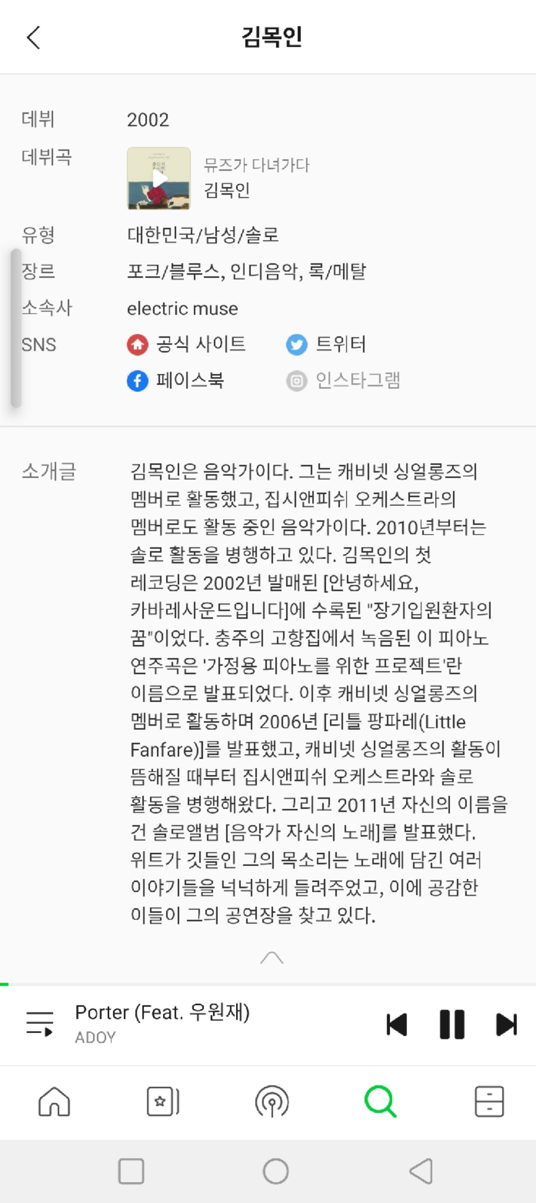 캐비넷 싱얼롱즈. 과거 김목인 소속 밴드. 담백하고 진솔한 곡을 잘 쓰는 목인씨.