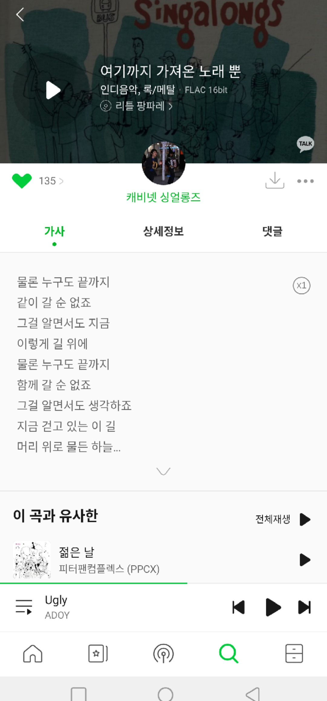 여기까지 가져온 노래뿐,을 들어야겠다.