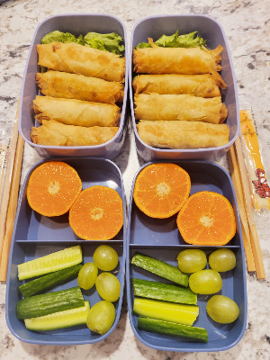 도시락 재료가 떨어져 있으면 난감하다. 특별한 메뉴가 없을 때는 아이들 도시락에는 햄과 치즈를 넣은 샌드위치가 기본이다. 여기에 주스팩 하나 넣고, 치즈나 크래커, 야채, 과일 몇 가지를 더하면 완성. 가끔은 파스타를 넉넉히 만들어 보온 용기에 담아주거나, 중국 마트에서 사 온 작은 새우 덤플링으로 간단한 만둣국을 만들어 넣어주기도 한다. 미니 김밥이나 스프링롤을 준비하기도 하고, 스팸 잘라 굴소스 한 스푼 넣어 계란 볶음밥을 만들어도 좋다. Naan으로 미니 피자를 구워주기도 하는데 아이들이 아주 좋아한다. 그날그날 상황에 따라 준비를 하고, 요즘은 반조리 냉동식품들 중에도 활용할만한 제품들이 많아서 여러 가지를 시도해보고 있다. 막내는 친구들이 컵라면을 가져오는 걸 보고 자기도 싸달라고 조르지만, 아직은 한 번도 넣어준 적은 없다. 정말 바쁜 날이 오면 그때는 넣어주게 될까?