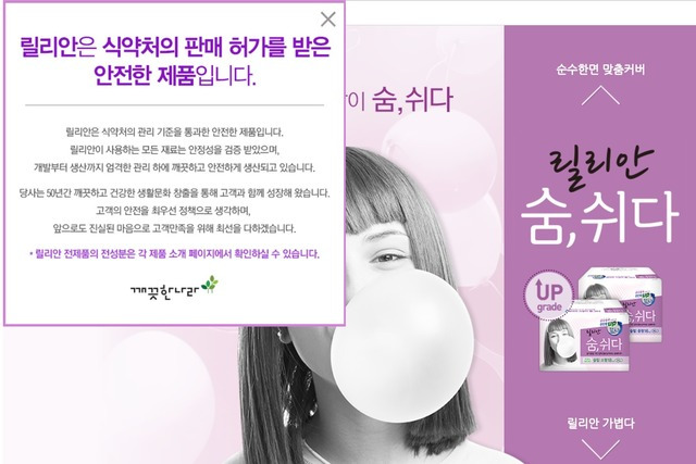 객관적인 수치로 증명할 수는 없지만, 여자라면 너도나도 느끼는 부분이 있다. 유난히 나와 맞지 않는다거나 여느 때와 다르게 몸이 좀 더 힘들 다는 것을. 그리고 그러한 공감대가 가장 많이 형성된 브랜드는 깨끗한 나라의 릴리안이었던 것으로 보인다. 약 5천여 명의 사람들은 아직까지도 깨끗한 나라를 대상으로 손해배상 소송을 진행 중이다.