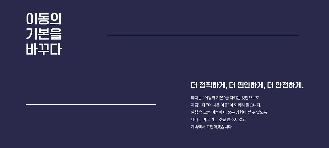 타다는 ‘이동 서비스’에 대해 새로운 물음표를 던지고 변화의 물꼬를 틀었다. 그래서 오늘도 타다타고 퇴근합니다.
