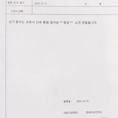 수요일 밤, 몸살 증상이 심해서 혹시 몰라 자가키트를 했더니 두 줄이었다. 너무 억울했다. 3개월 전인 8월 말에도 이미 한 번 코로나에 걸린 적이 있었다. 여러 군데를 쏘다니다가 걸린 거라면 덜 억울했을 거다. 백수라 회사도 안 나가고 면접 준비하느라 집-회사만 왔다 갔다 했는데 하필 이런 중요한 시기에 코로나에 걸리다니. 다음날 아침, 집 앞 병원에 가서 신속항원검사를 했다. 혹시나 하는 마음으로 음성이 나오지 않을까 기대해봤지만 결과는 역시 '양성'이었다.