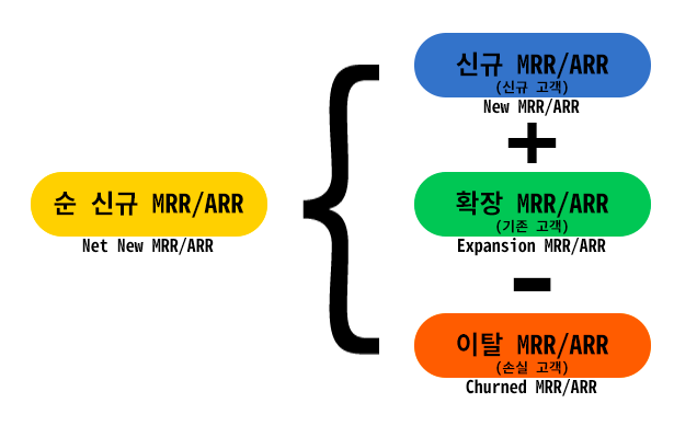 이 세 가지를 모두 합하면 순 ARR(또는 MRR)이 됩니다.