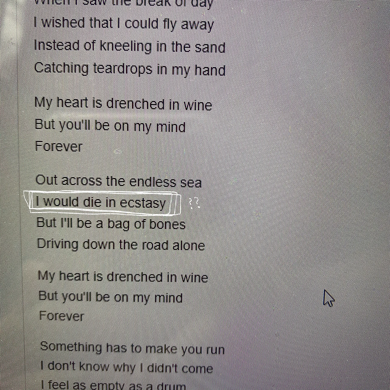 노라존스는 바다에서 죽을 것이라 이야기하지 않았다. 'ecstasy'라는 마약을 한 것처럼, 황홀경 속에서 죽을 것이라고 노래했다.