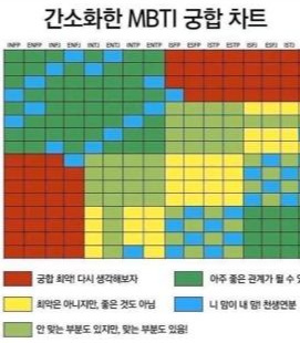 또 성격 유형별 궁합을 보면, ENTJ의 경우에 최악의 궁합이나 만나지 말라는 유형이 없는 것을 볼 수 있다. 처음에는 '응?' 싶었지만, 나의 가장 친한 친구는 그 인과관계를 바로 이해하더라. "너는 참 다양한 사람들이랑 만나고 다니잖아. 나는 정말 잘 맞는 사람 아니고선 절대 따로 만나거나 연락하지 않는데, 너는 나 말고도 다른 무리들에 잘 녹아든다고 생각했었어." (이 친구는 날 MBTI무새로 만든 장본인이다.) 생각해보니 정말 그랬다. 분명한 이유가 있어서 싫거나 어울리기 별로인 사람들은 없었다. 나는 사람들에게 잘 맞춰주는 성격이었고, 사실 잘 맞춰줄 수 있었던 큰 이유는 그들에게 거는 기대가 0에 수렴했기 때문이겠다. 내 성격의 주요 포인트는 바로 이것이었다. 사람들에게 매정하다시피 정이 없고 기대도 없다는 것. (처음 MBTI 결과를 접했을 때 거부감이 들었던 것도 이런 내용 때문이었을 것.. 받아들이기엔 너무 차갑잖아요)