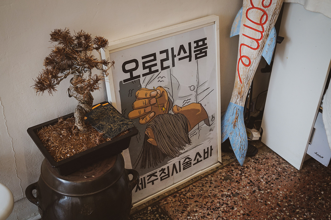 이곳은 소바집이다. 구제주를 오랜 시간 지켜오던 ‘제주침시술소’가 가진 잠재력(?)을 알아차린 사장님이 침 할아버지를 삼고, 아니 오고초려하여 설득한 끝에 가게 문을 열었다고 한다. 무엇이 더 필요할까. ‘침시술소’라는 공간이 인테리어요, 간판 자체가 브랜드이자 강력한 마케팅 포인트이다. 이곳에서 감귤 모양, 현무암 모양, 이모양저모양 제주 기념품을 팔았다면 어우, 다행이다... 사장님이 소바를 만들 줄 알아서.