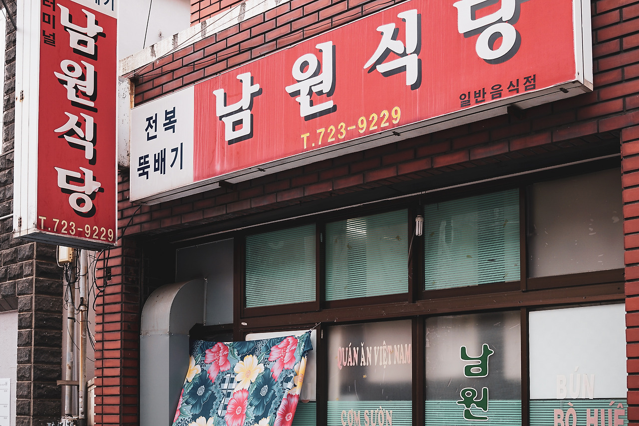 식당 이름이야 뭐 요즘도 흔히 볼 수 있을법한 이름이니 그렇다 치고, 간판 한쪽 귀퉁이를 차지한 전복뚝배기의 존재감이 남다른 이곳은 베트남 쌀국수 가게이다. 예상컨데 전복뚝배기가 없었다면 이 가게를 찾는 손님은 지금보다 분명 적었을 것이다. 모두가 이 장면을 찍고 있으니 말이다. 당연한 말이지만, 이곳에 전복 뚝배기는 없다.