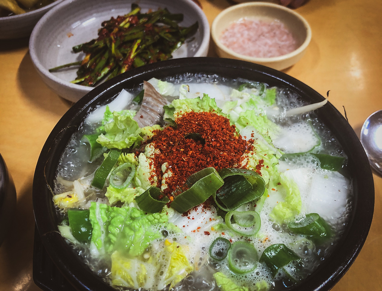 국물 한 숟갈 떠서 입에 넣으면 ‘크아~’가 절로 나온다. 이전에 먹던 순대 국물의 맛이 아니다. 콩나물과 배추를 넣어 끓여 훨씬 깔끔하고 시원하니 어서 달큰한 제주 막걸리를 주문하자.