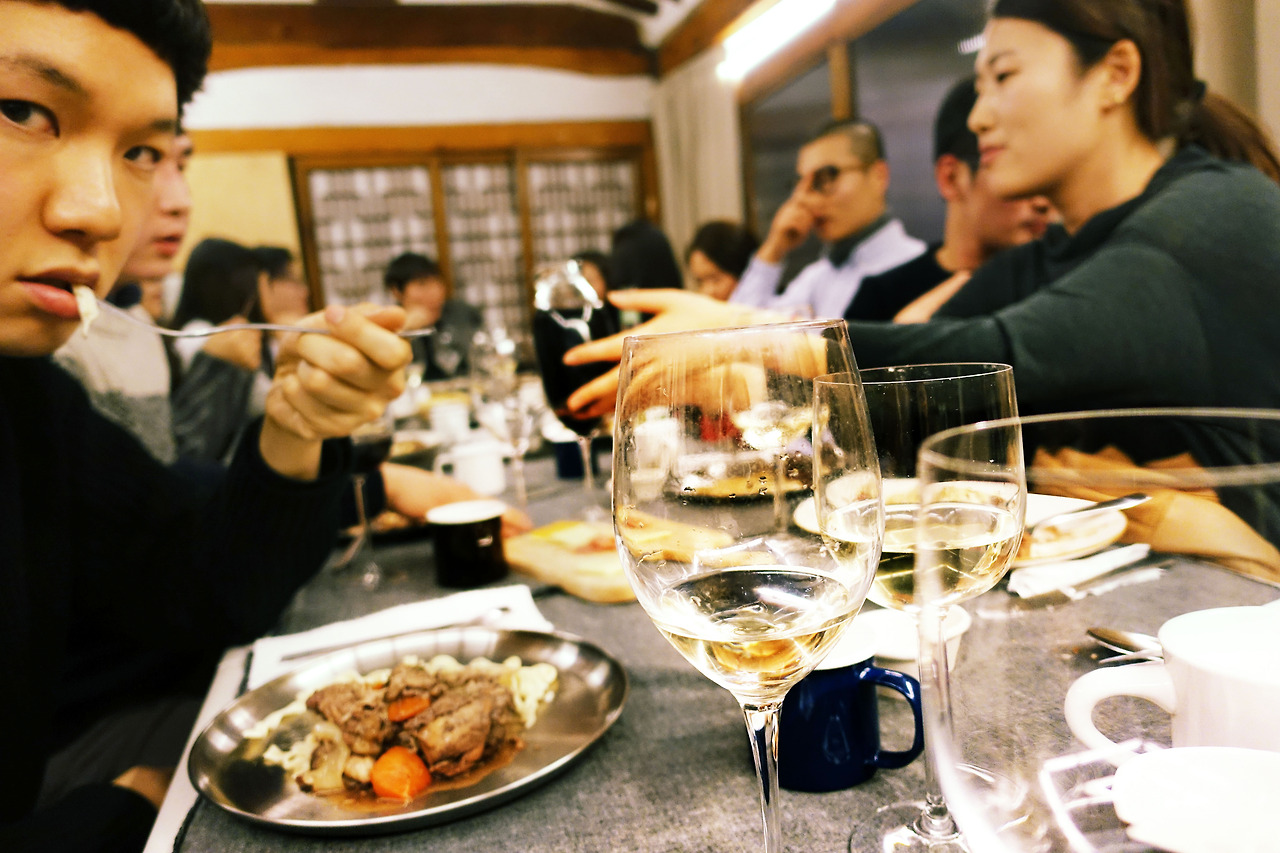 한겨울의 정취를 품은 한옥, 스스럼없이 서로의 생각을 나누는 멋진 사람들, 적막하지도 시끄럽지도 않은 음악, 노란 조명을 담은 화이트 와인, 그리고 맛있는 음식. 이 모든 것들은 우리가 오늘 본 미술을 더욱 강력하게 만들었다.