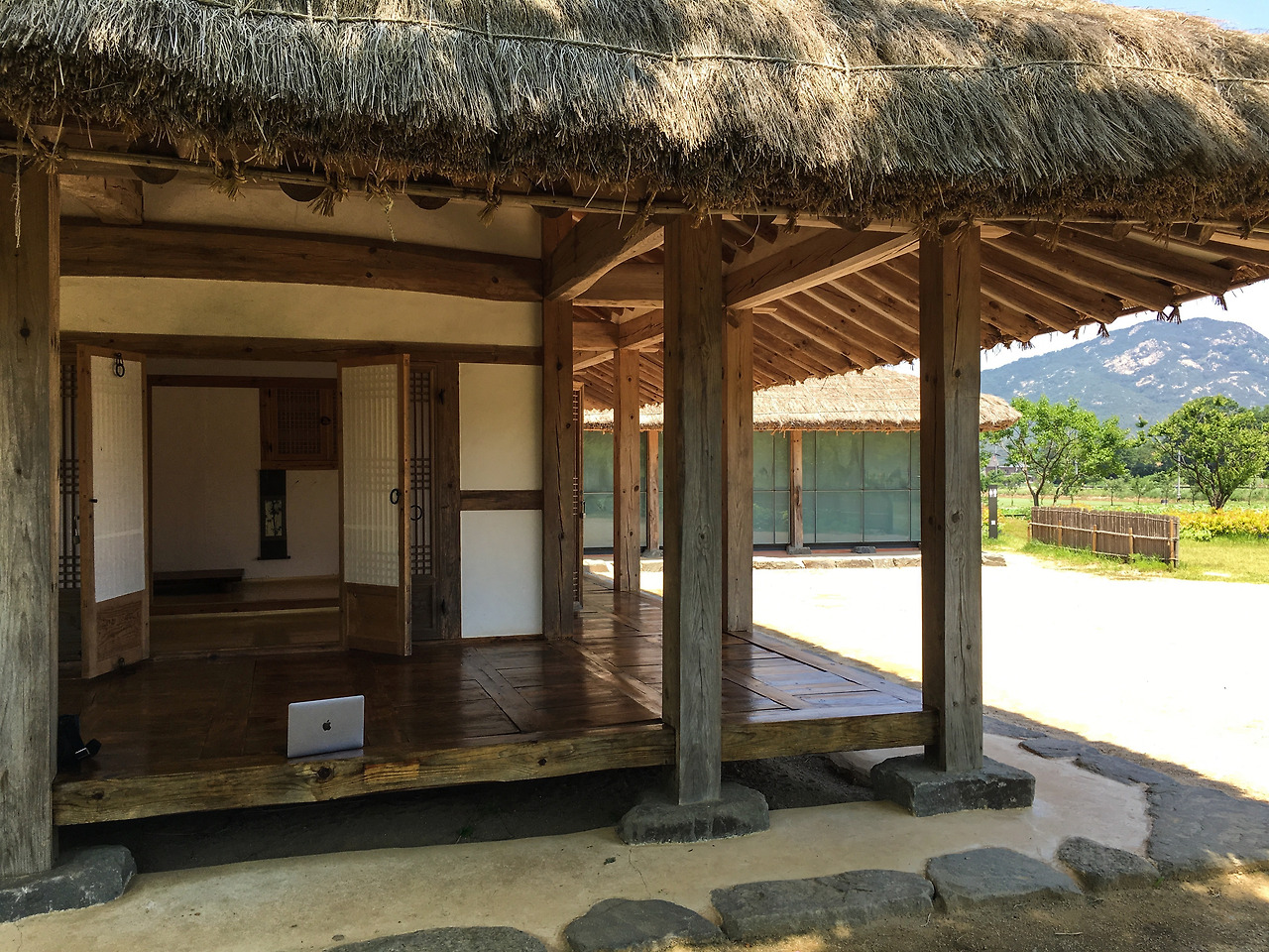 이응노 생가의 툇마루. 선생이 앉았을 법한 적당한 곳에 틀어 앉아 글을 쓰고 있자니 기분이 뭉게뭉게하다.