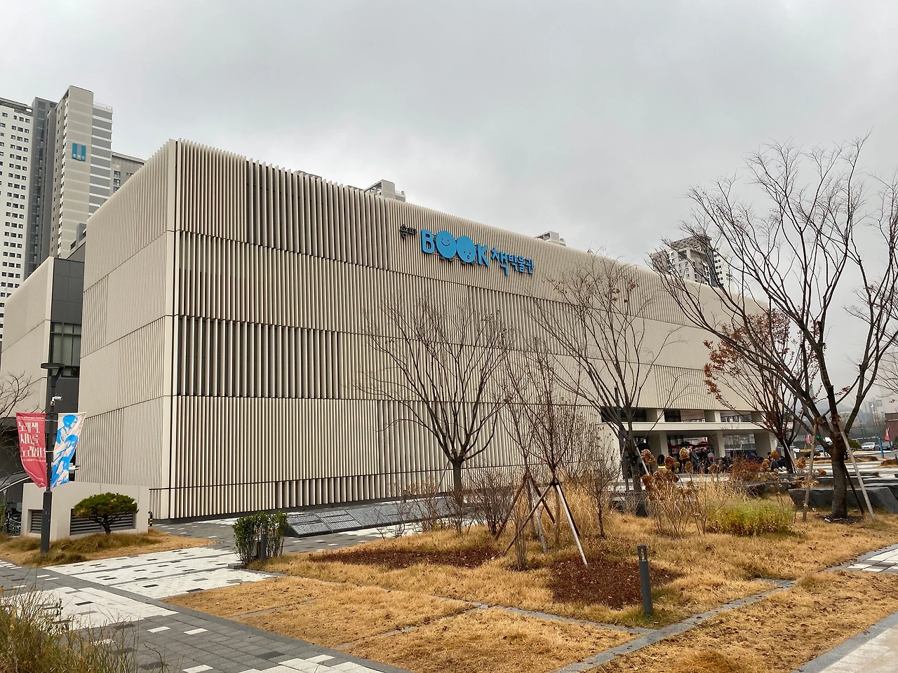이 곳에 갔을 때 내가 꼭 그랬다. 송파역에서 내려 초등학교와 석촌시장을 지나 터벅터벅 걷다보니 어느새 나온, 누가 봐도 웅장한 새 건물. 다소 뜬금없게 느껴지는 위치에서도 존재감을 뿜으며 낯선 위용을 뽐내던. 국내에 처음으로 생긴 공립의 책 박물관이라는 네임드에 걸맞도록 마치 서가에 꽂혀있는 책의 모습처럼 일자 무늬의 건축재가 다양한 간격으로 꽂혀있는 외관을 볼 수 있었다.