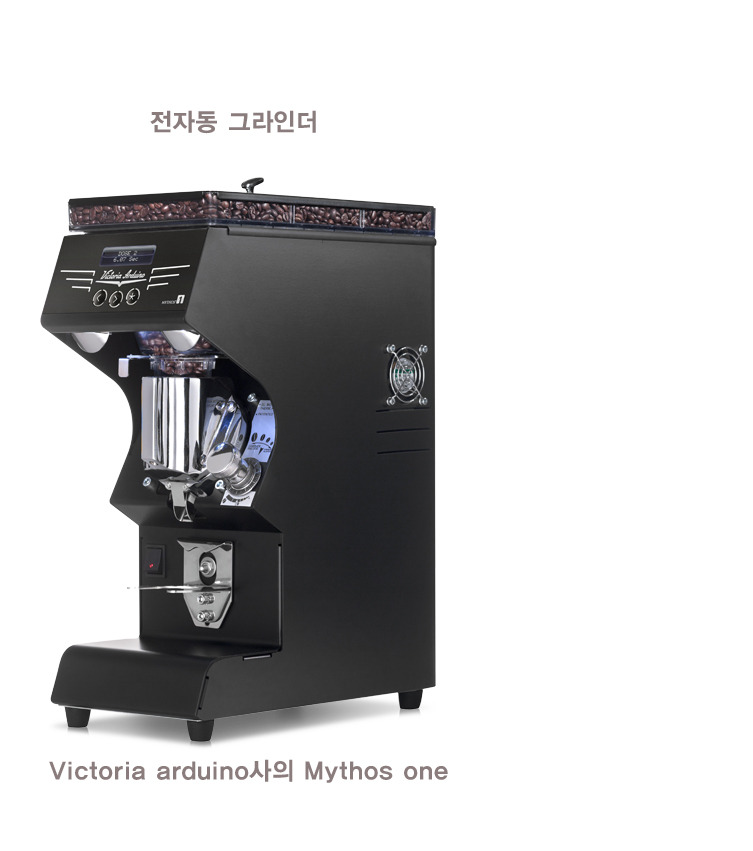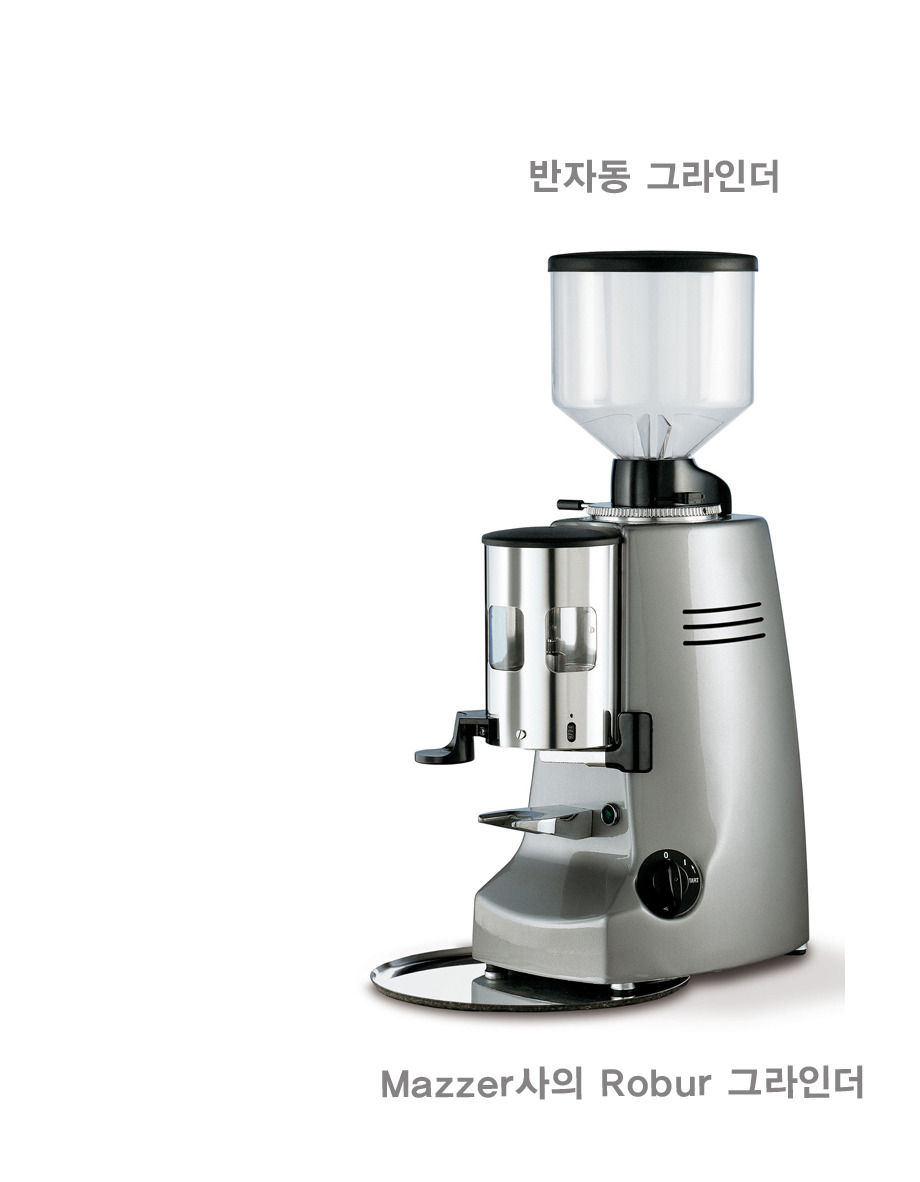 에스프레소를 추출하기 위한 기구인 에스프레소 머신과 함께 사용되는 장비로 높은 온도와 고압력으로 빠른 시간 내에 에스프레소를 추출하는 커피머신을 위해 아주 고운 입자로 분쇄를 할 수 있는 성능을 갖추고 있는 커피 그라인더입니다.