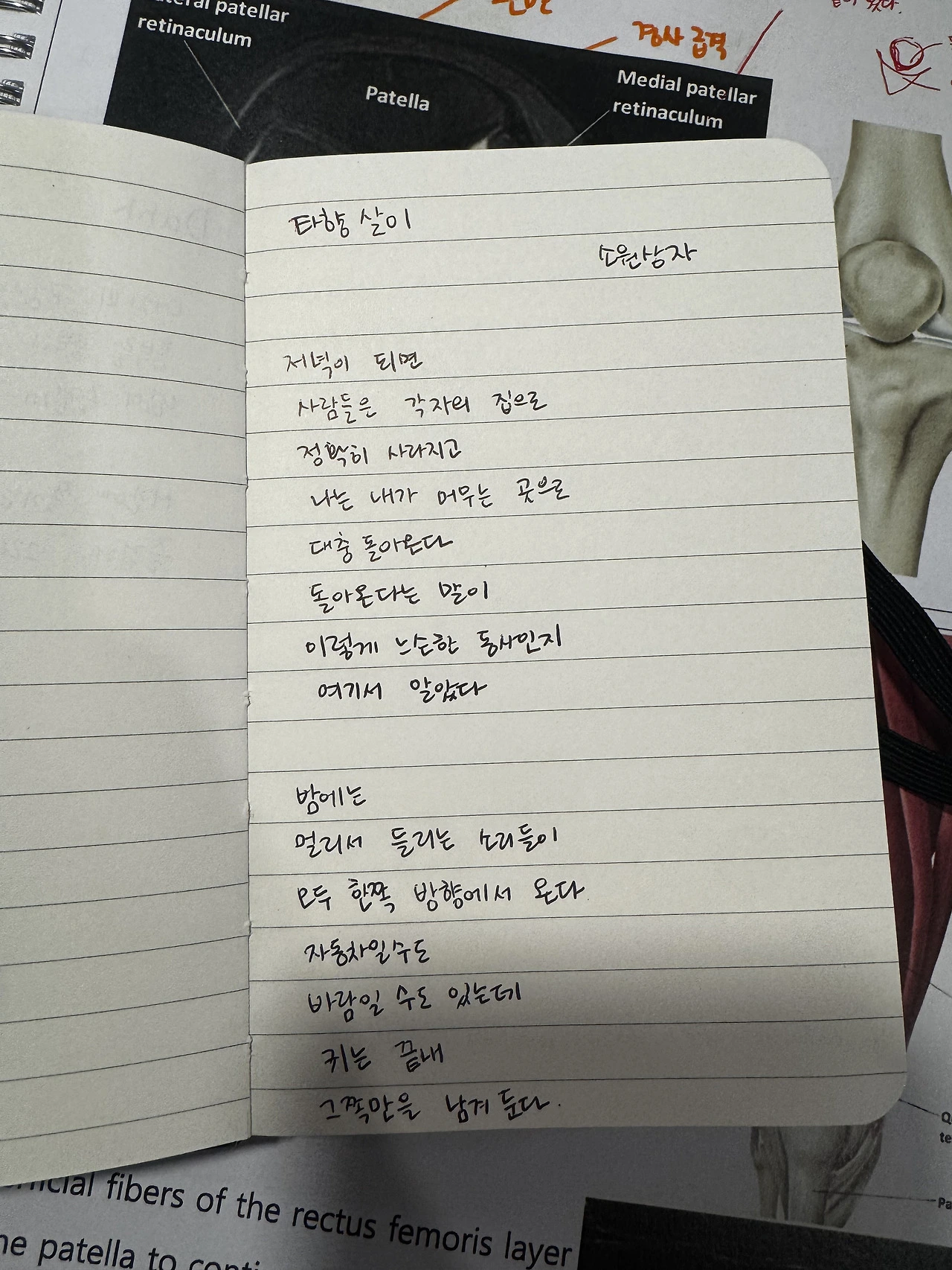 소원상자님의 타향살이라는 시의 일부를 필사했다.
