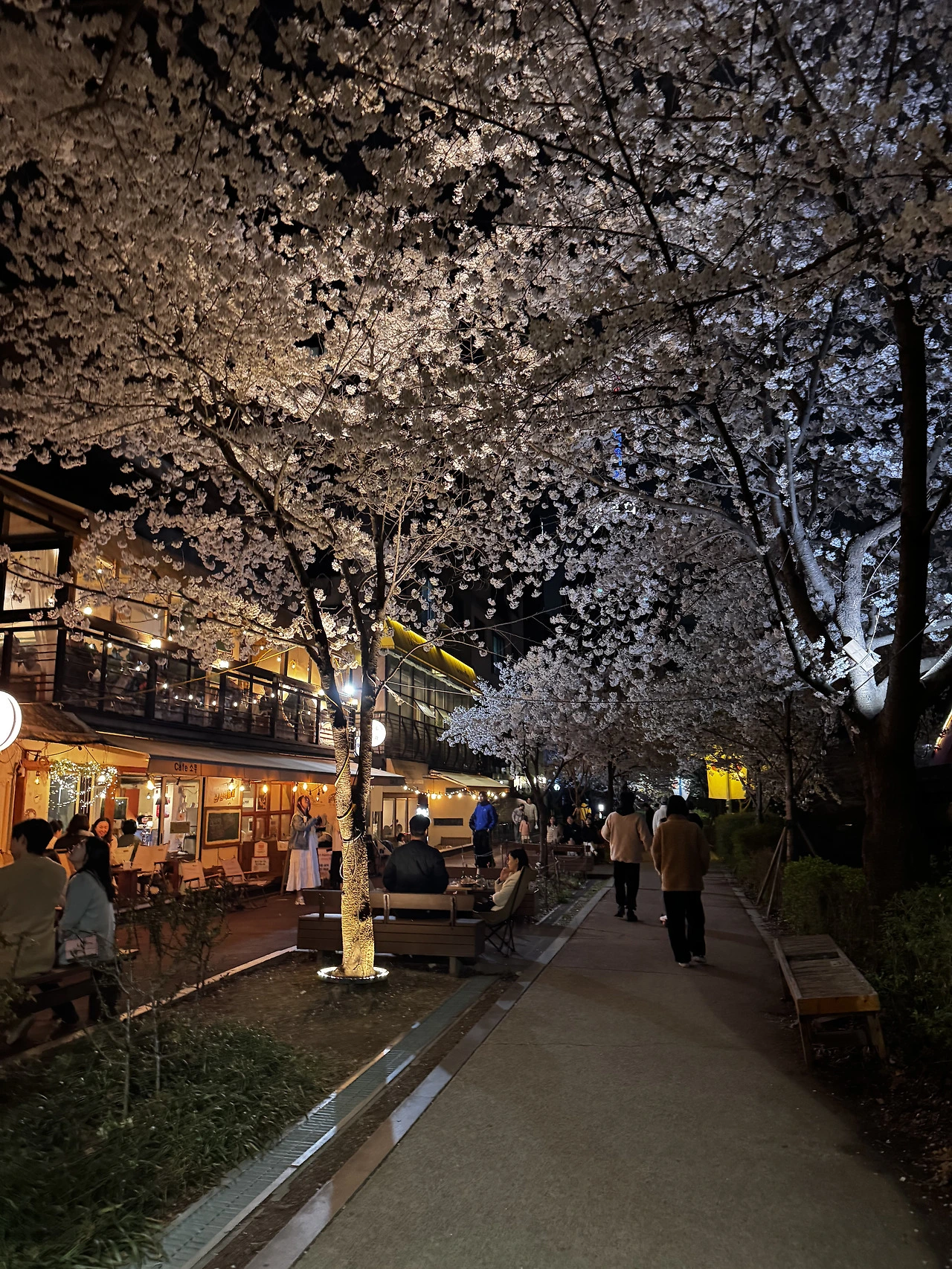 약속장소까지 4km 정도 뛰어갔는데 벚꽃구경 인파로 중간 중간 걸을 수밖에 없었다.