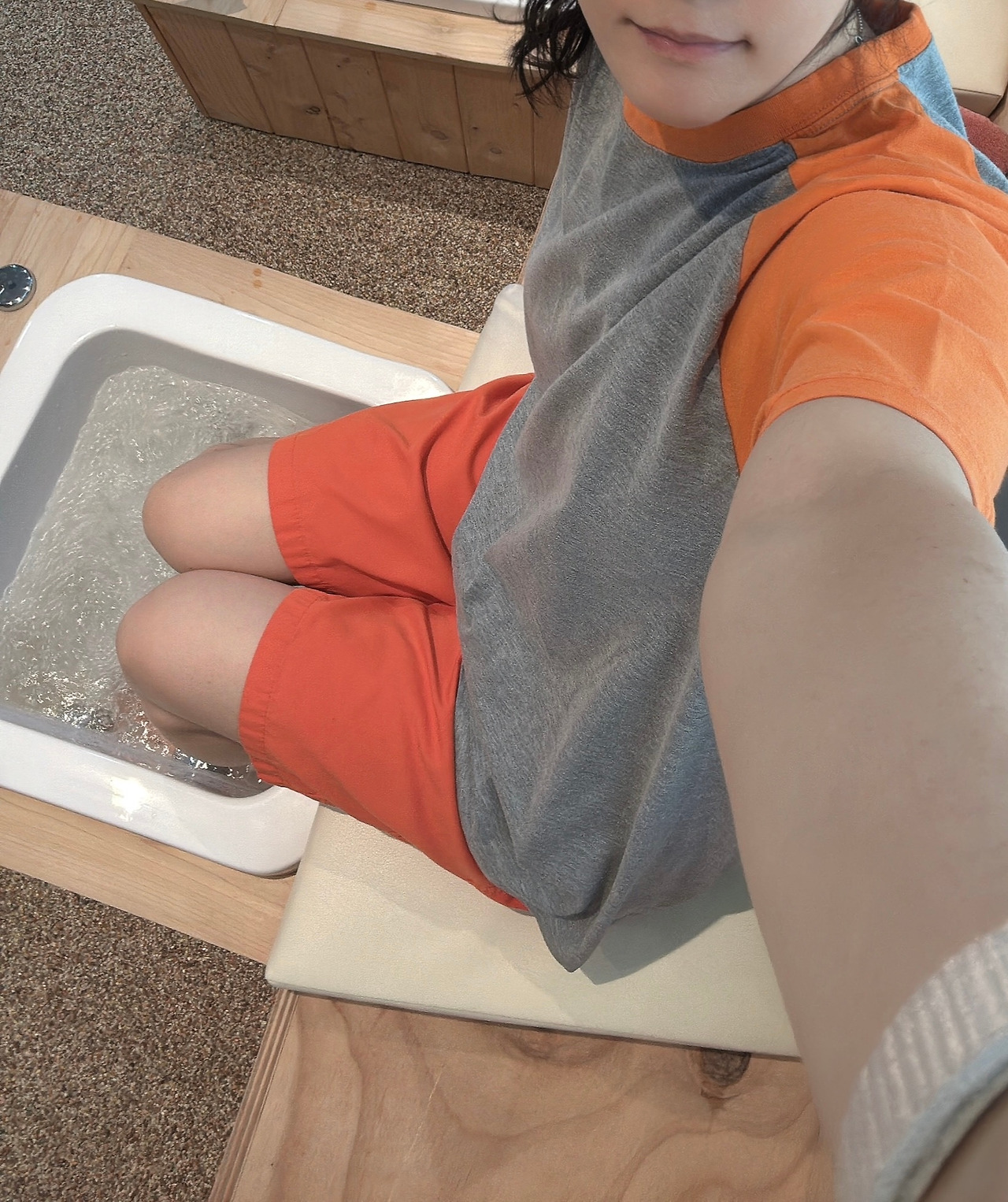 여자 직원 두 분이 카운터에 계셨다. 그 중 한 분의 안내에 따라 찜질방복 같은 옷으로 환복하고 족욕하는 곳으로 가서 족욕을 했다.