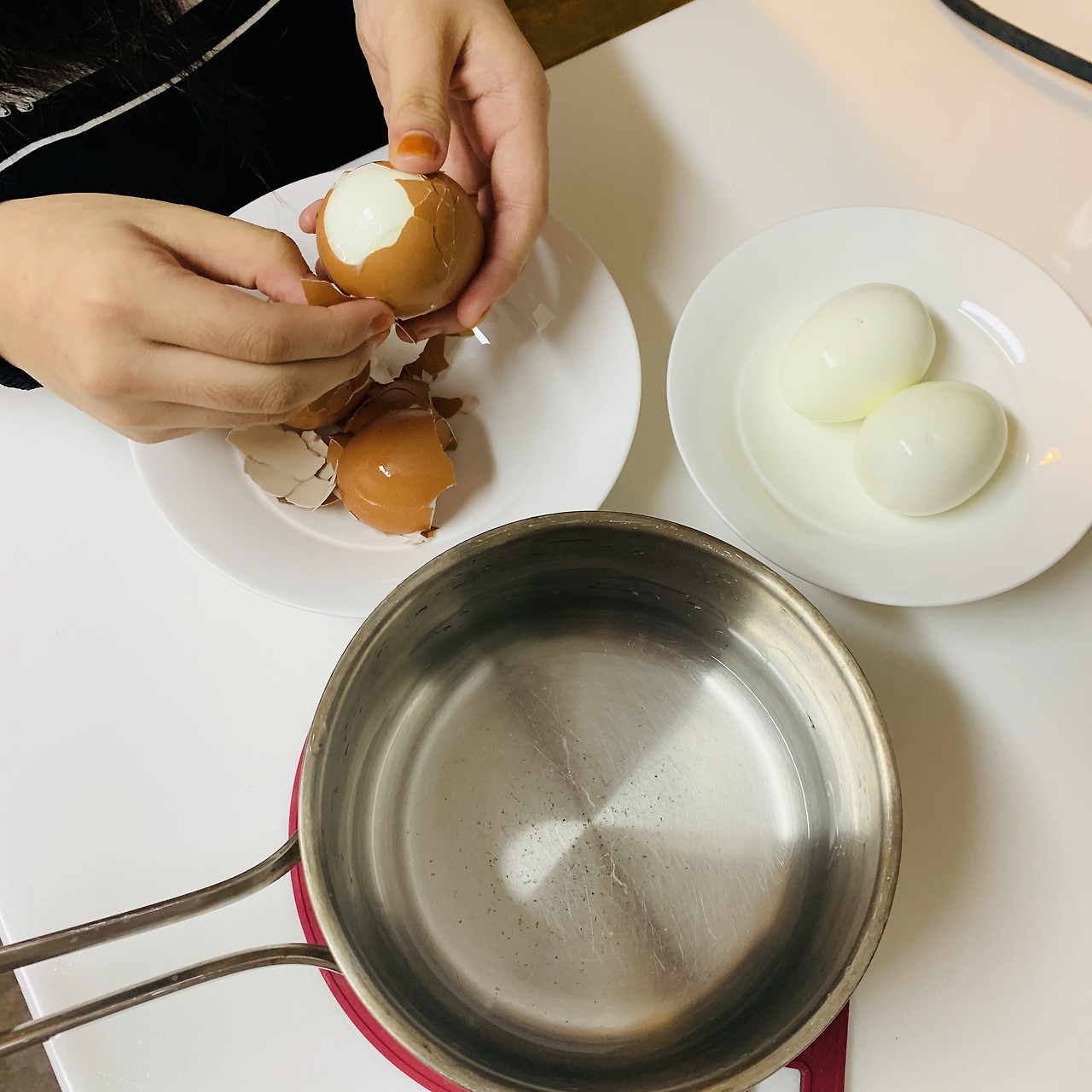 저 매끈하게 잘 까진 달걀 좀 보세요.