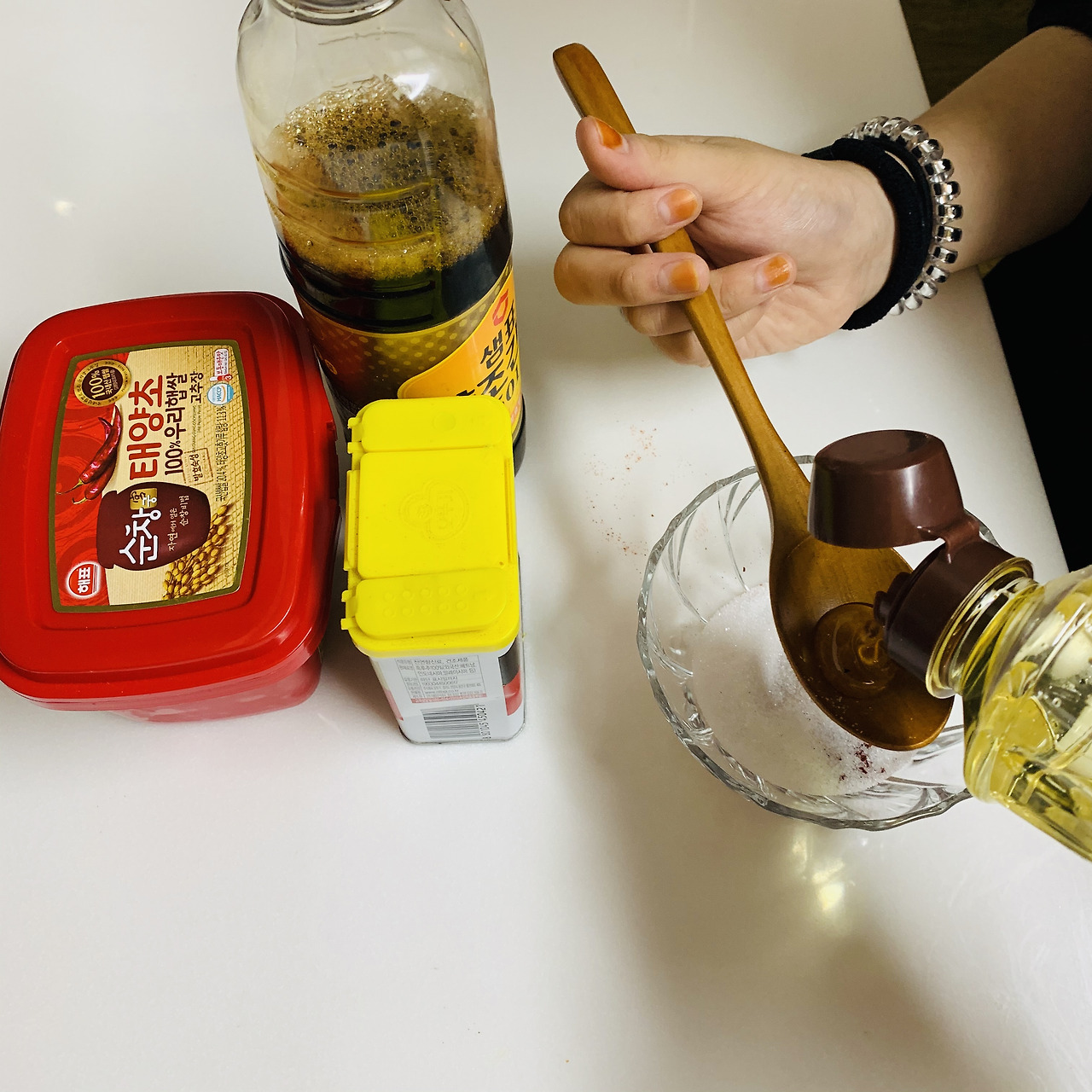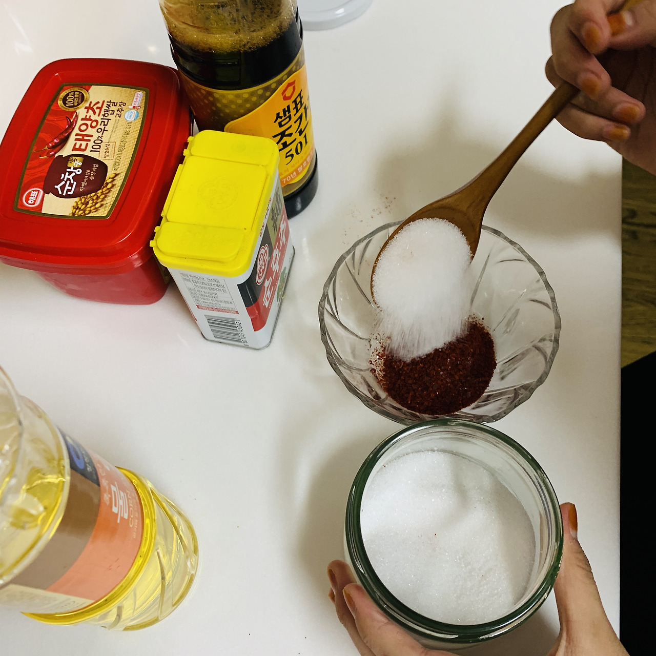 물엿, 설탕, 고춧가루, 후추