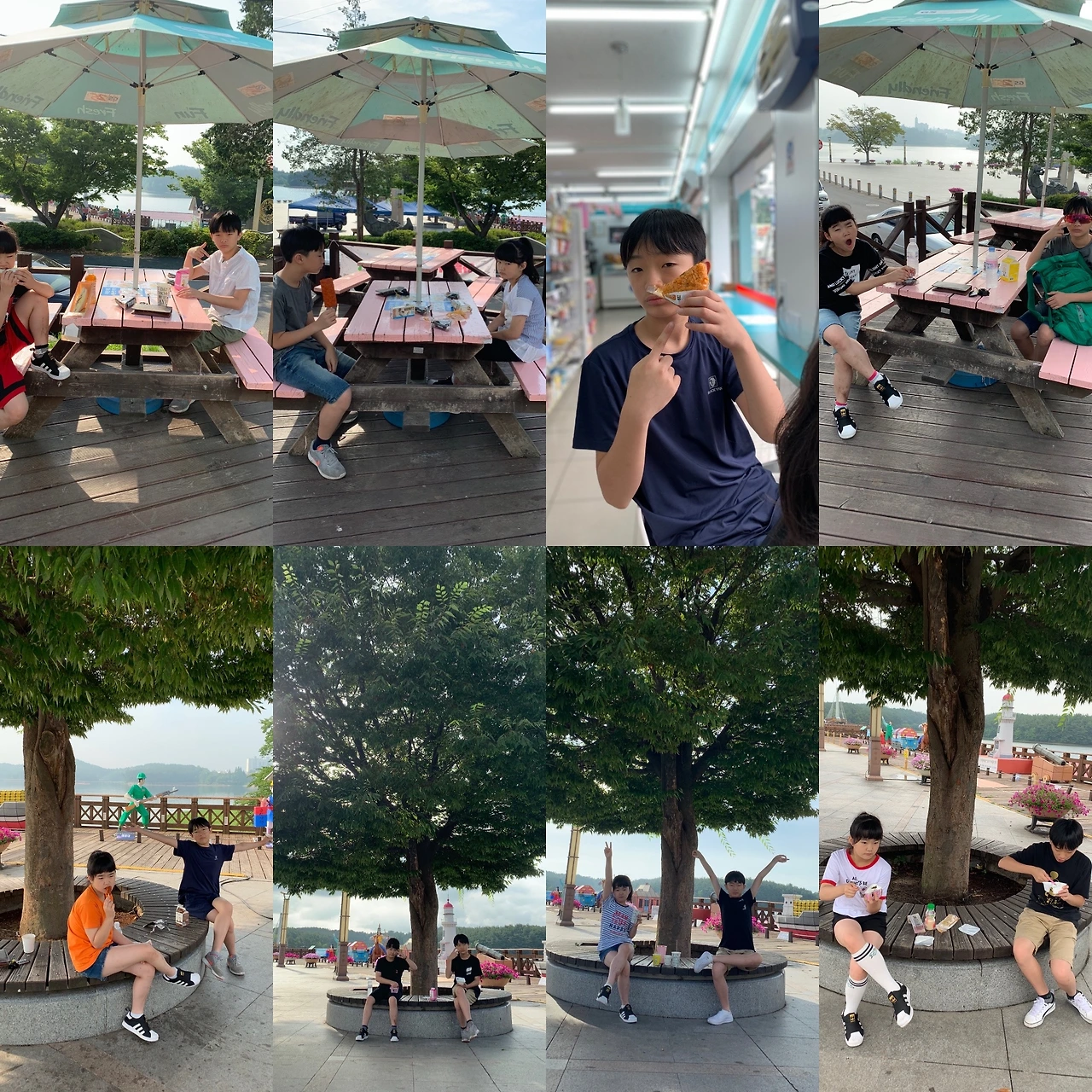 어떻게 하면 아이들과 시간을 즐겁고 알차게 보낼 수 있을까를 고민하다가 생각해 낸 것이 “금요 데이트”다. 금요일 아침은 학교 가는 길에 있는 공원 앞 편의점에서 먹기로 한다. 그 날은 평소에 엄마가 먹는 것을 금했던 모든 것이 다 허용되는 날이다. 비 오는 날이면 아침부터 셋이 나란히 앉아 취향에 맞는 컵라면을 먹었다. 삼각 김밥도 먹고 콜라도 먹고 젤리도 먹었다.