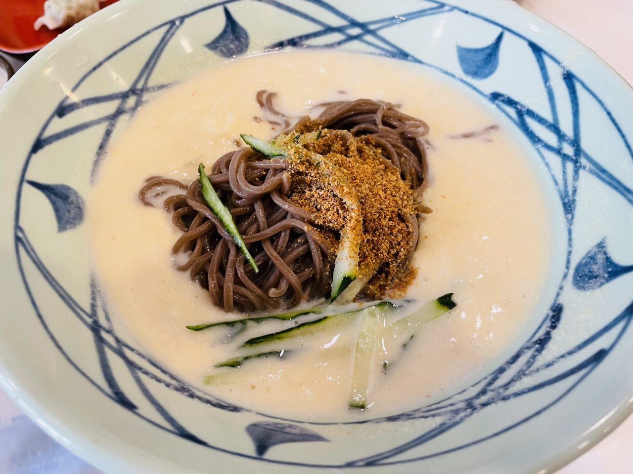 후루룩 후루룩. 맛있게도 먹는 녀석들. 이럴 때 보면 영락없는 애들이다. 먼저 나온 아이들의 소바 육수부터 한입. 짭짤하고 구수하고 시원하고 달큰한 살얼음 동동 육수가 입, 식도, 위까지 내려가는 것을 느끼며 전율한다. 소바를 느끼고 있으니 콩국수가 나왔다. 콩국수는 보기만 해도 건강 해지는 느낌이다. 콩을 갈아 만든 국물에 채 썬 오이가 다소곳하게 올라앉았다. 일단 아무것도 넣지 않은 콩국수 국물은 숟가락으로 떠먹는다. 숟가락으로는 감질맛이 난다. 그릇째 들고 마시는 콩국물은 머릿속까지 찌릿하게 한다. 설탕 두 스푼, 소금 1/2 스푼. 나에게 딱 좋은 간이다. 휘휘 잘 섞고 다시 한번 국물 맛을 본다. 그렇지 이 맛이지. 지금부터는 스피드가 중요하다. 면이 불기 전에 최대한 콩국수 본연의 맛을 느끼며 빠르게 흡입한다. 면들이 서로 경쟁하며 입속으로 질주한다.