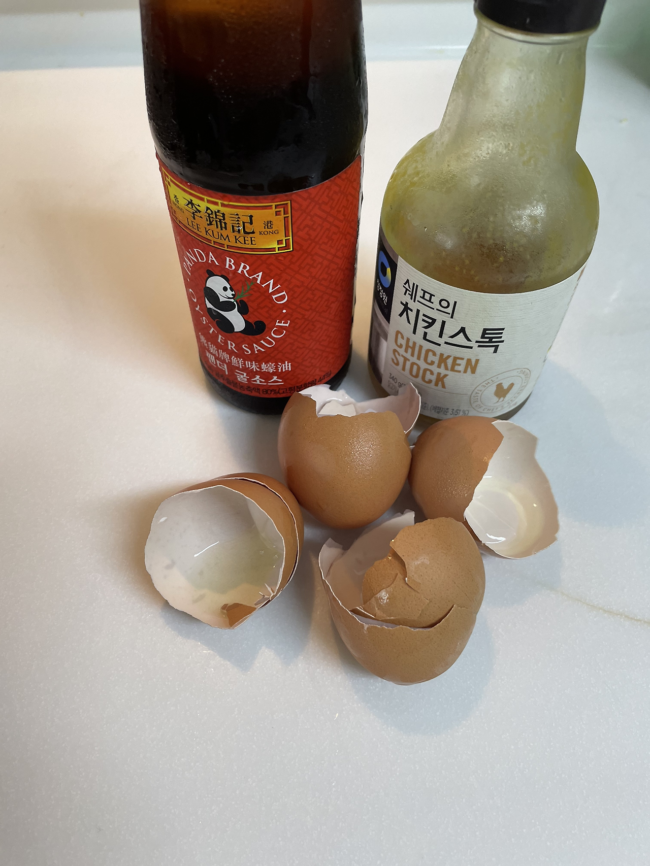 대파, 달걀, 치킨스톡, 굴소스, 밥.