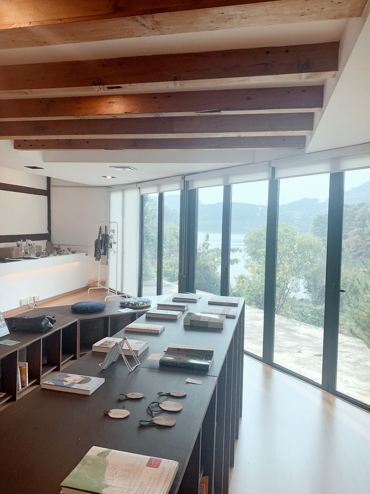 호수가 내려다 보이는 책방이다. 서점에 옹기종이 앉아 그림책을 읽던 아이들은 마당으로 나가 뛰어놀기 시작했다. 덕분에 책방은 고요하고 조용해졌다. 아이들의 웃음소리 가득했던 책방도 좋았지만 아이들이 썰물처럼 빠져나간 자리는 고요함이 밀물처럼 밀려와 평화로움을 선물했다. 이런 곳에서라면 하루 종일도 책을 읽을 수 있을 것 같았다. 이 사진을 보면 누구라도 이 번 주말에 가고 싶은 곳 리스트에 올릴 것이다. 뭐 하고 있어요, 어서 주말에 여행하기 좋은 곳 리스트에 올리지 않고. 자연과 책을 한꺼번에 누릴 수 있는 호사가 여기 있다고요.