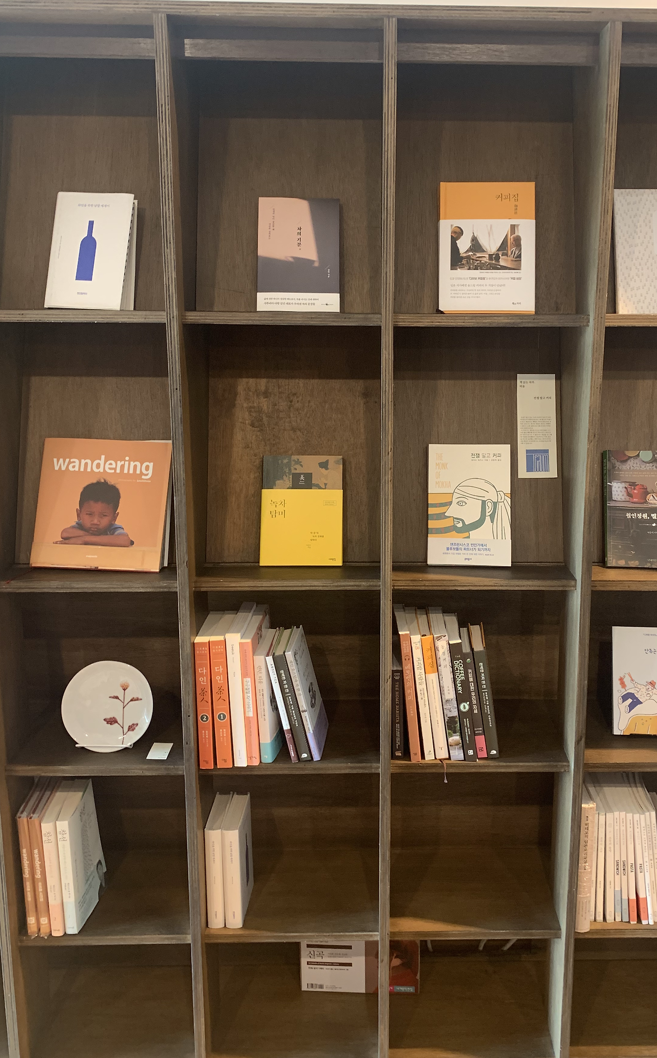 책방지기님 남편분이 건축가라고 한다. 그래서 서점 한편에 건축 관련 서적들을 배치했다. 그리고 그 옆으로는 티움의 색깔과 어울리는 차와 커피에 관한 책들이 전시되어있다. 부러운 마음은 안 비밀. 자신이 좋아하는 책과 남편이 좋아하는 책을 서점에 배치해 놓고 바라볼 흐뭇한 표정이 그려진다. 책방지기님과 어울리는 차에 관련된 책을 모셔올까 하다가 요즘 핫한 책 “보건교사 안은영”을 모셔왔다. 책을 정성스럽게 다루어 포장을 하고 종이가방에 넣어 건네주셔서 그런지 책의 가치가 더 커지는 것 같았다. 같은 물건도 어떻게 대하느냐에 따라 느낌이 다르다. 이렇게 책을 소중히 다루시는 분이라면 평소 책을 얼마나 사랑하실지 알 것 같아 마음이 더 포근해졌다.
