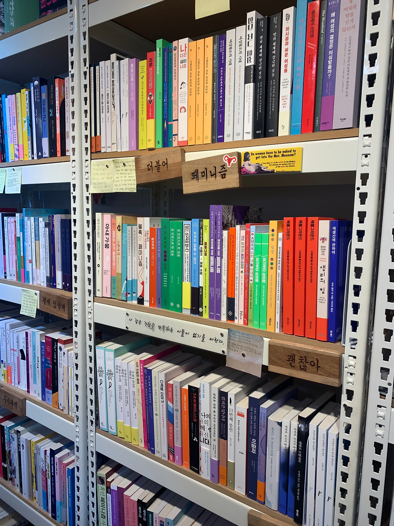 책들을 분야별로 나누어 정리 해 두었고 지기님의 추천 글들이 메모지에 정리되어 붙어 있다. 관련된 분야의 여러 책들을 함께 볼 수 있어서 책을 고르는데 도움을 줄 수 있을 것 같다. 나는 독립 출판 책 중에 지기님이 추천한 #카페일기 를 모셔 왔다. 제주도에서 작은 카페를 운영하며 쓴 짧은 일기들을 모아 만든 책이다. 슬프고 또 재미있고 유쾌한 책이다. 역시 모를 땐 전문가의 도움을 받는 게 중요하다.