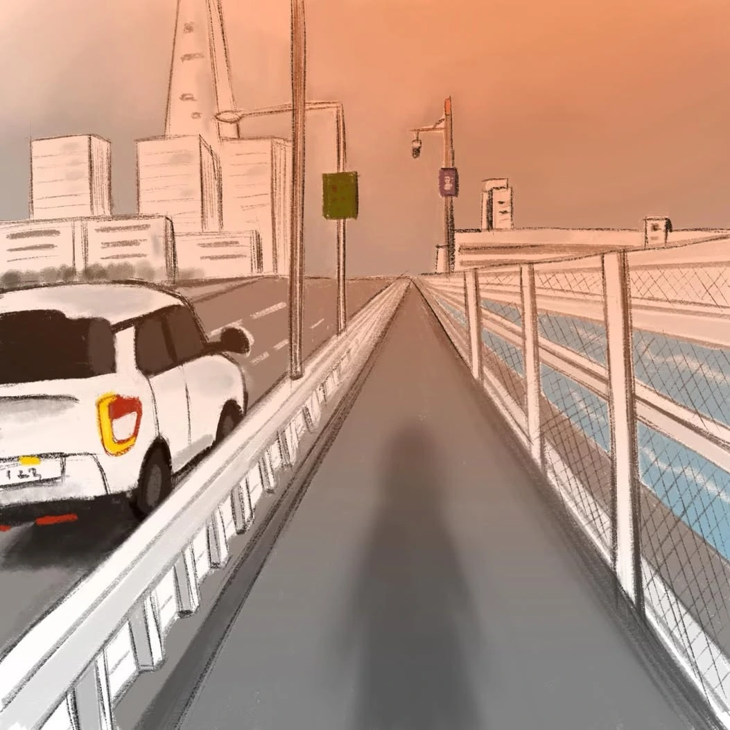 대교를 점점 벗어나고 있었다.
